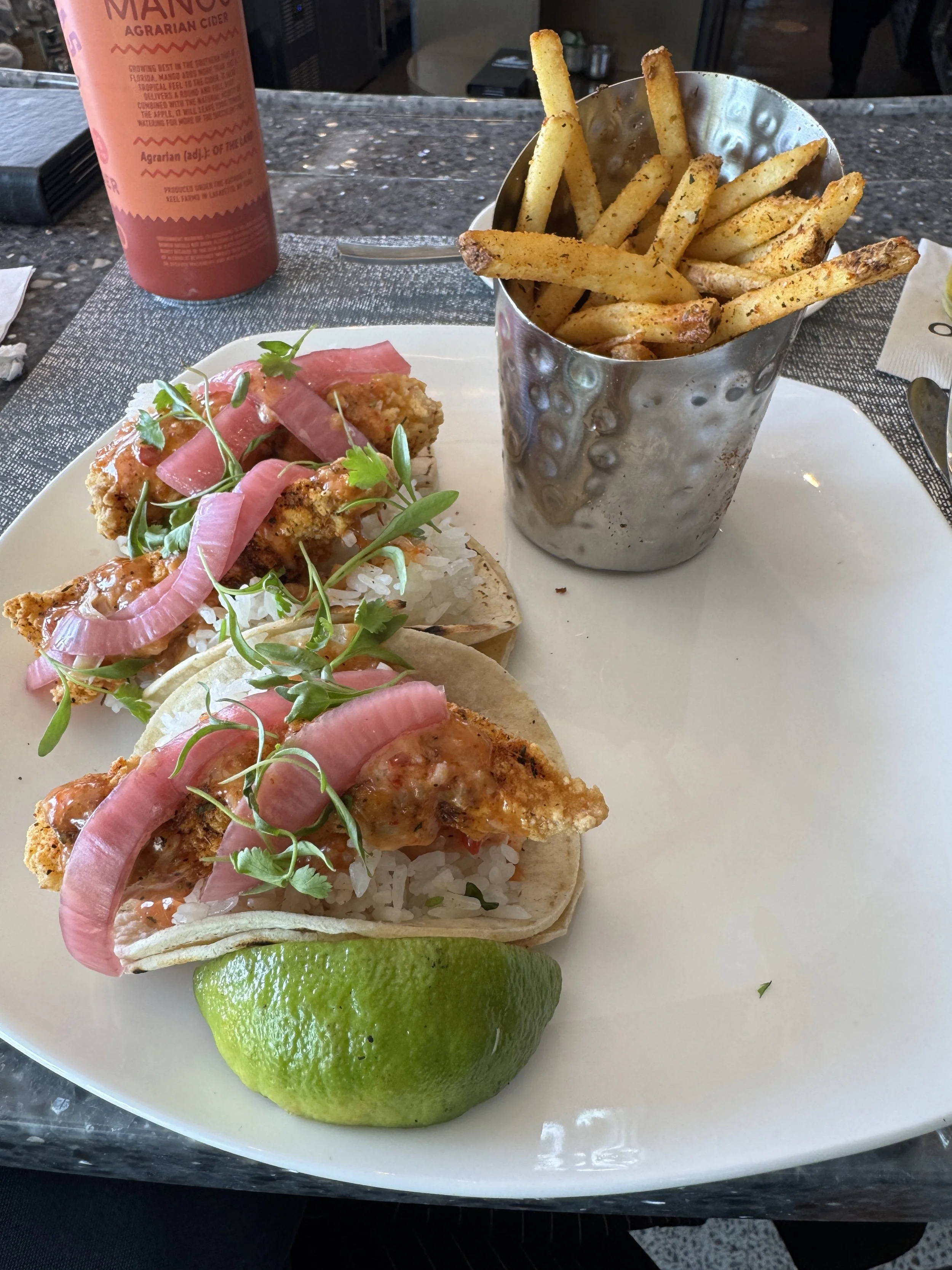 The food menu is surprisingly good, too. I had the fish tacos, which were fresh and flavorful, while my boyfriend tried a couple of different beers and enjoyed the laid-back vibe. It was the perfect way to end the trip — casual, unique, and full of character.