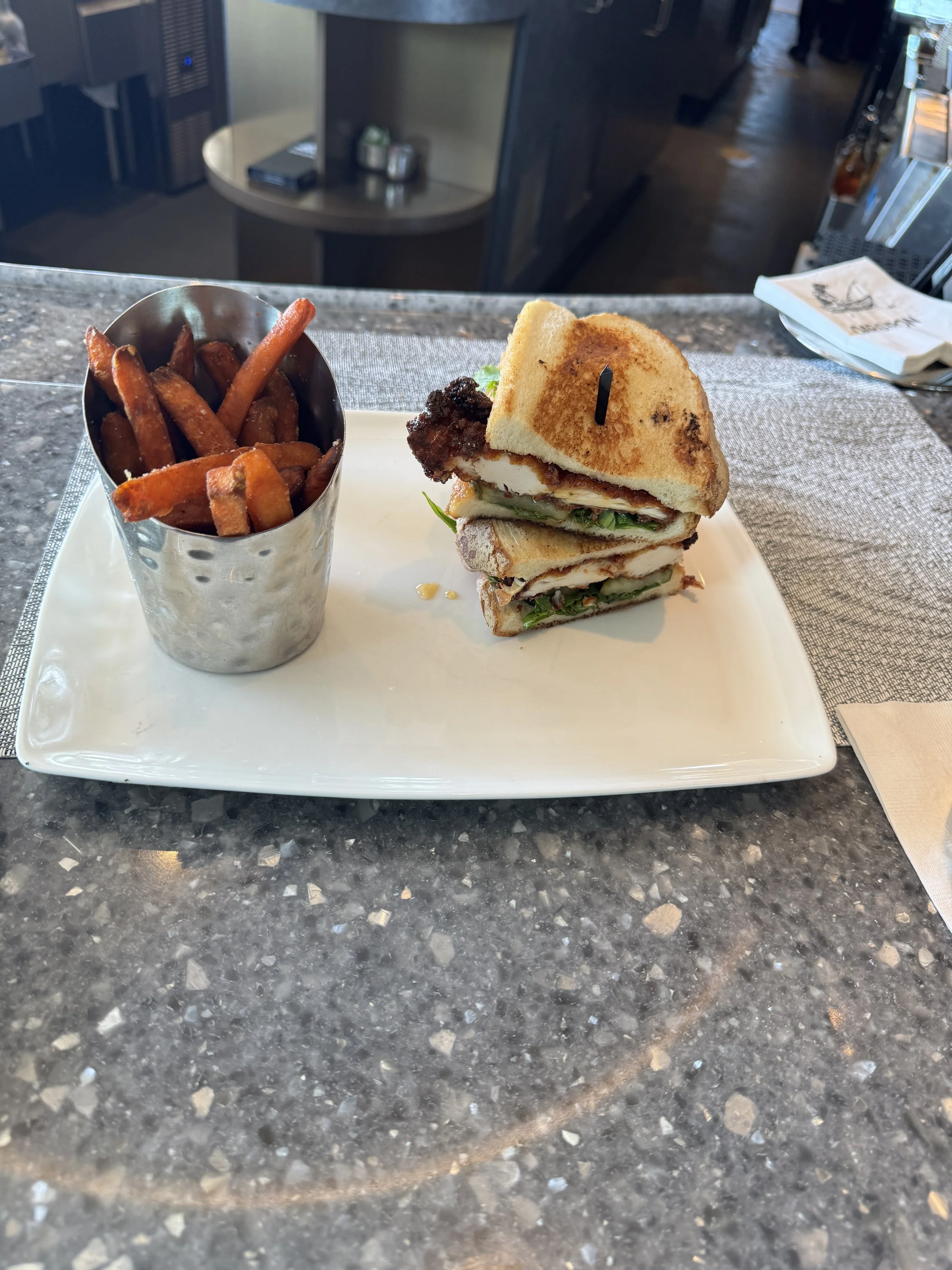 Since we arrived early, they were only serving breakfast until 10:30 am, so that’s what we went with. I ordered an egg and bacon bagel sandwich, which hit the spot after a long night of travel. The staff was friendly, the service was quick, and the atmosphere was relaxed.