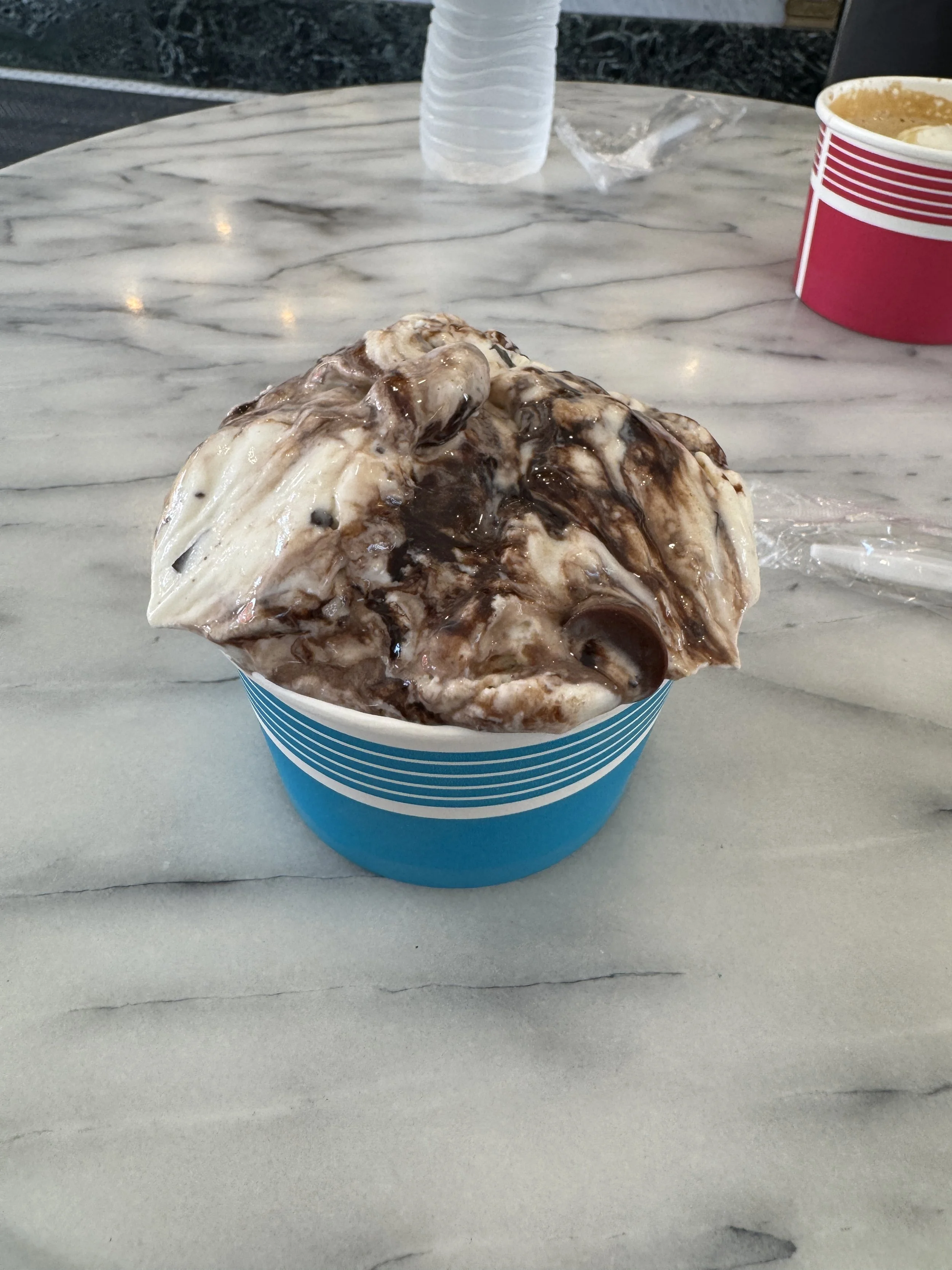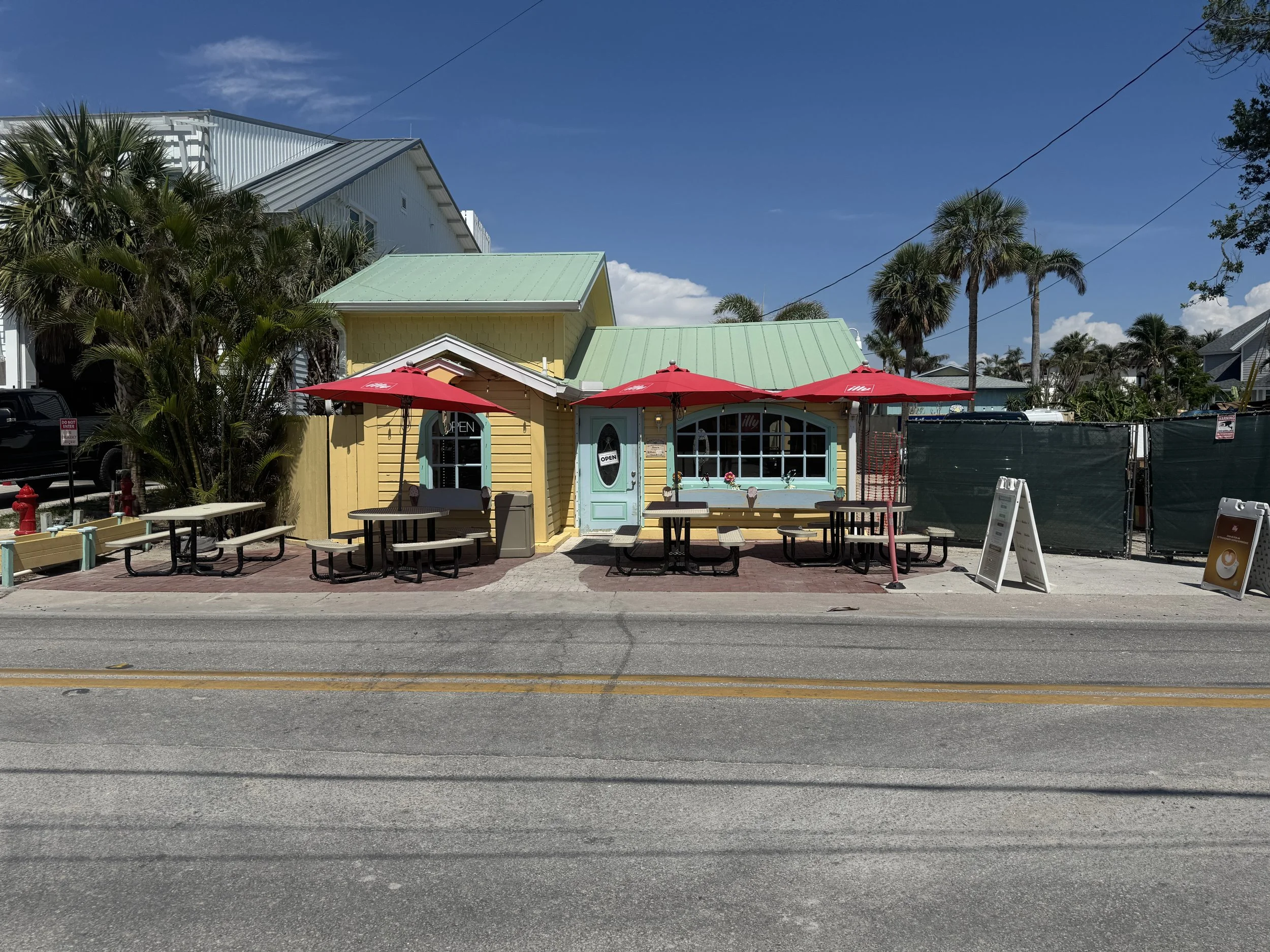 From there, we continued the drive across to Captiva Island to visit The Bubble Room — a quirky, colorful spot that’s famous for its ice cream, towering cakes, and over-the-top décor. I went with a scoop of cookie dough and Gator Trail ice cream, and my boyfriend ordered an affogato.