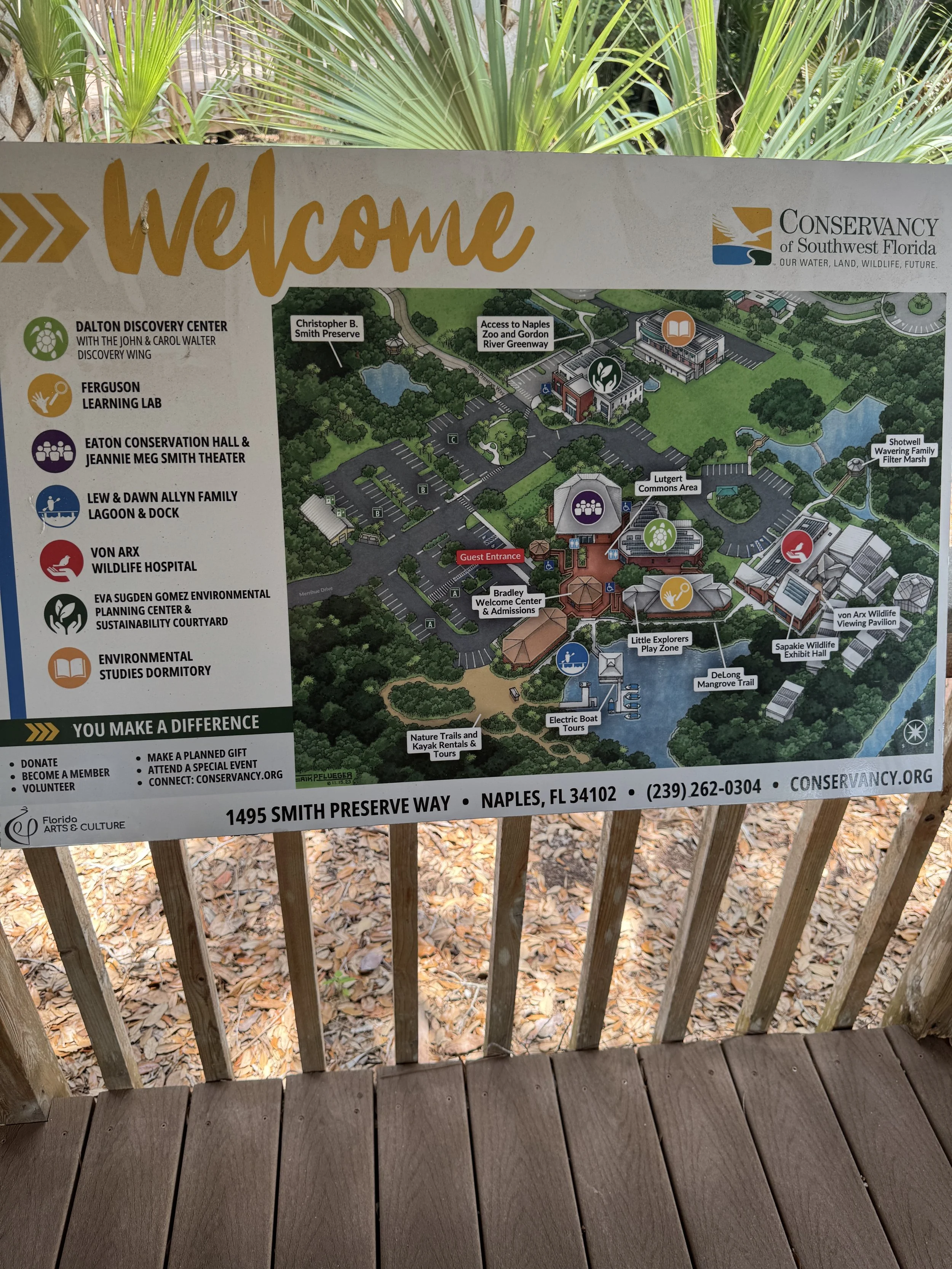 From there, we continued on to the Conservancy of Southwest Florida in Naples, an incredible 21-acre property dedicated to protecting and preserving the environment. Established in the 1960s, the Conservancy combines education, conservation, and hands-on learning, making it a great stop for both adults and families.