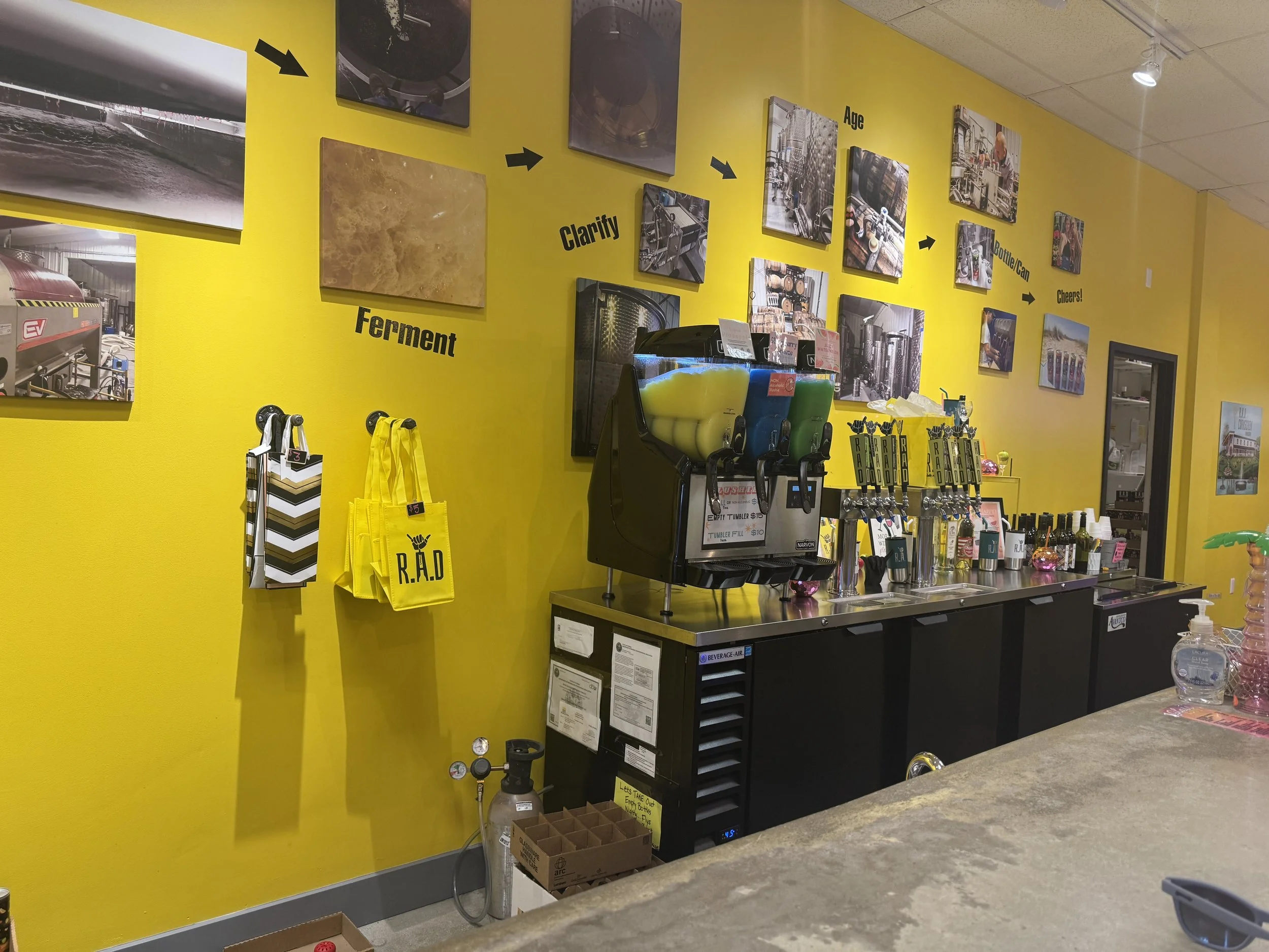 While exploring, we stopped at the RAD Winery & Cidery Tasting Room, which ended up being one of the highlights of the mall. They offer a large selection of wines, plus four ciders, wine slushies, and mixed wine cocktails. The tasting is a great deal — five samples for $7 — and the bartender was fantastic, very friendly, knowledgeable, and interactive, which made the experience even better.