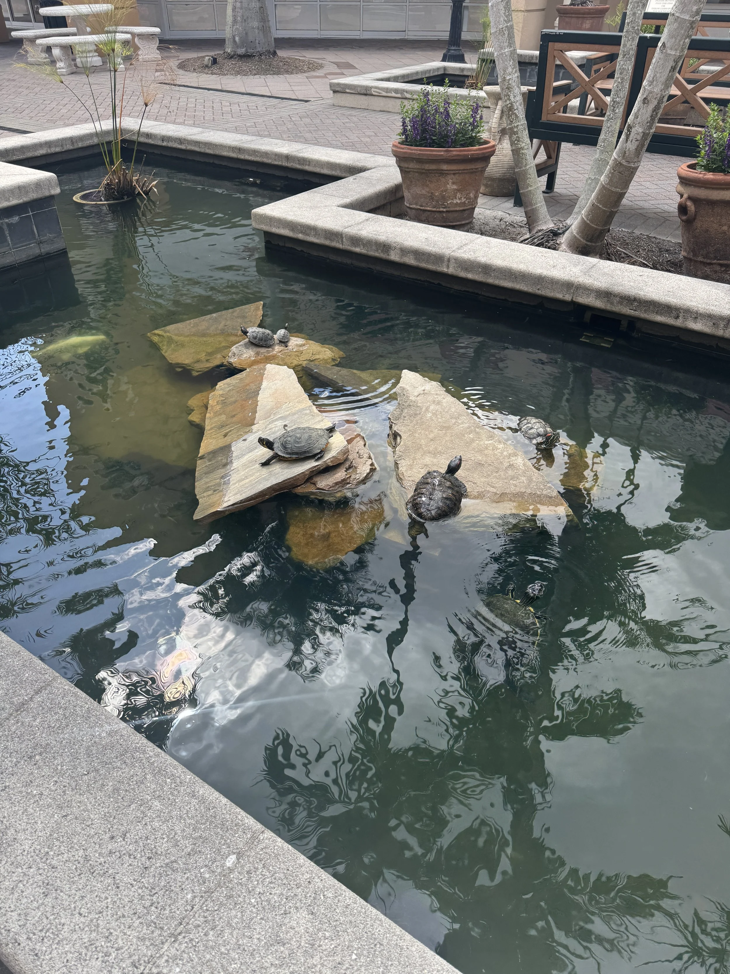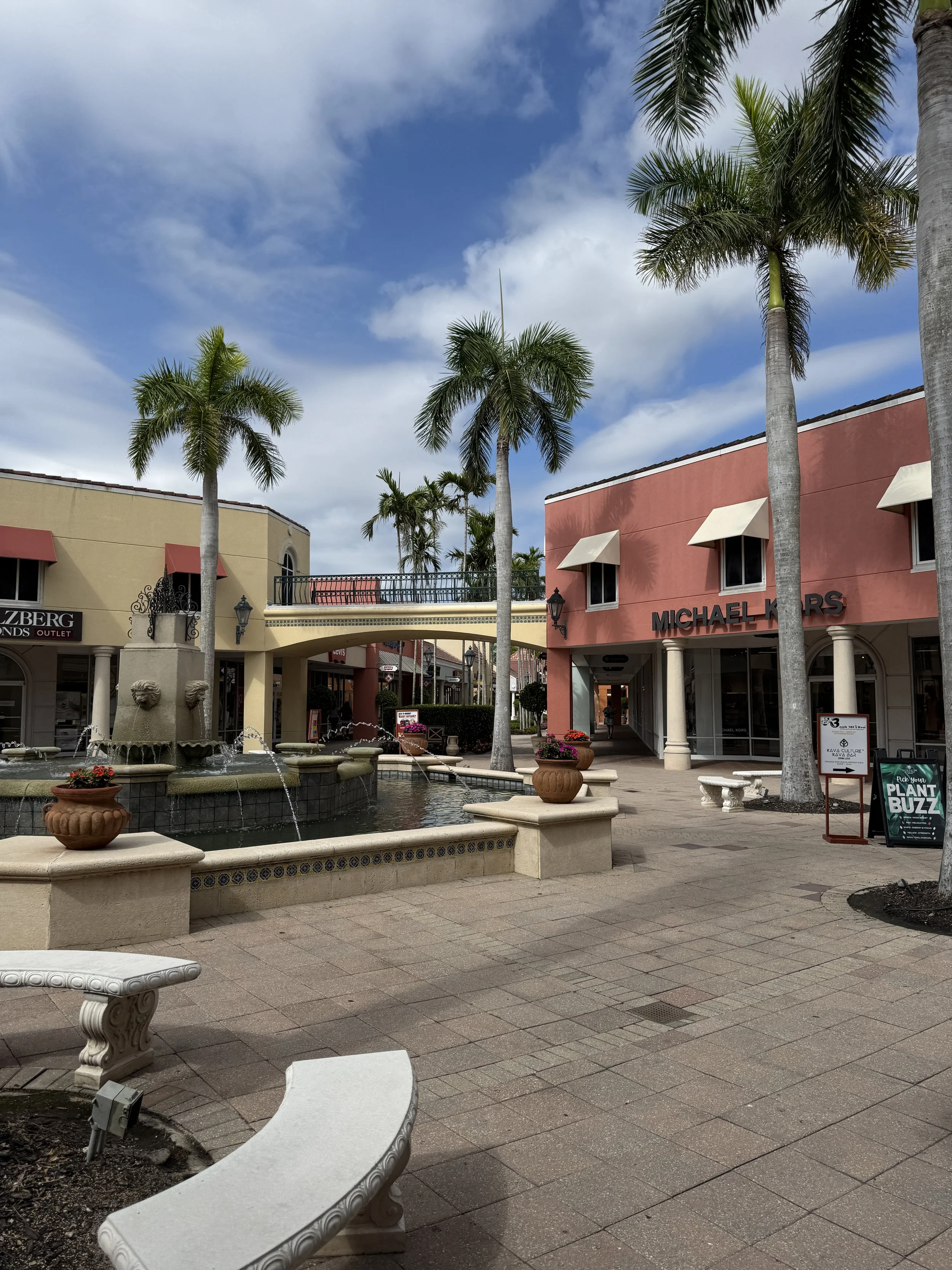 After leaving Six Mile Cypress Slough Preserve, we drove over to the Miromar Outlet Mall to do a little shopping. The mall is spacious, clean, and beautifully designed, with plenty of outlet shops mixed in with regular retail stores. The decor is charming, featuring small landscaped areas, fountains, and even a tiny pond where we spotted koi fish and turtles — a nice little surprise while wandering between shops.