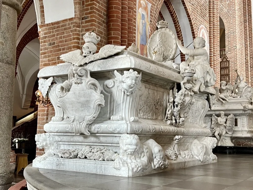 The next stop was Roskilde Cathedral, Denmark's most important church, is a UNESCO treasure. Built in the 12th century, it's the royal burial ground and a stunning example of Gothic architecture. This place was HUGE. It has tombs underground and caskets on display. In total, 39 Danish kings and queens are housed within its walls, each reflecting the artistic style of the era. There is also a lot of marble statues, mosaic art, iron gates, and stained glass. This is another spot that you would spend a good chunk of time wandering around.