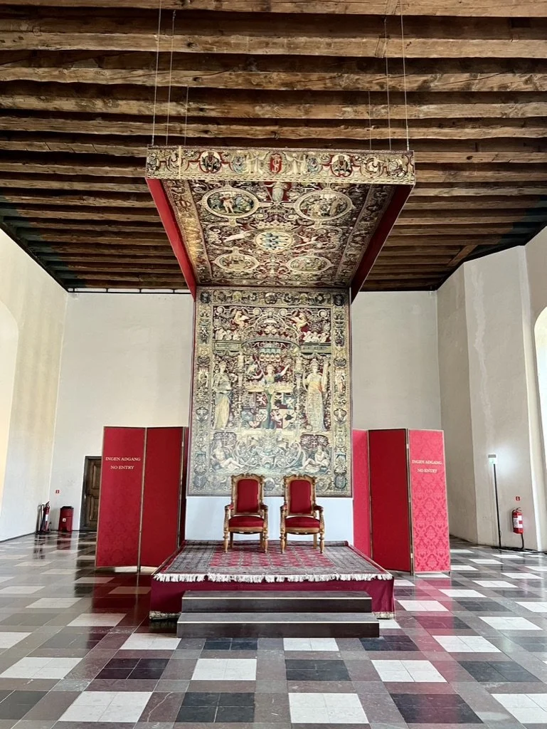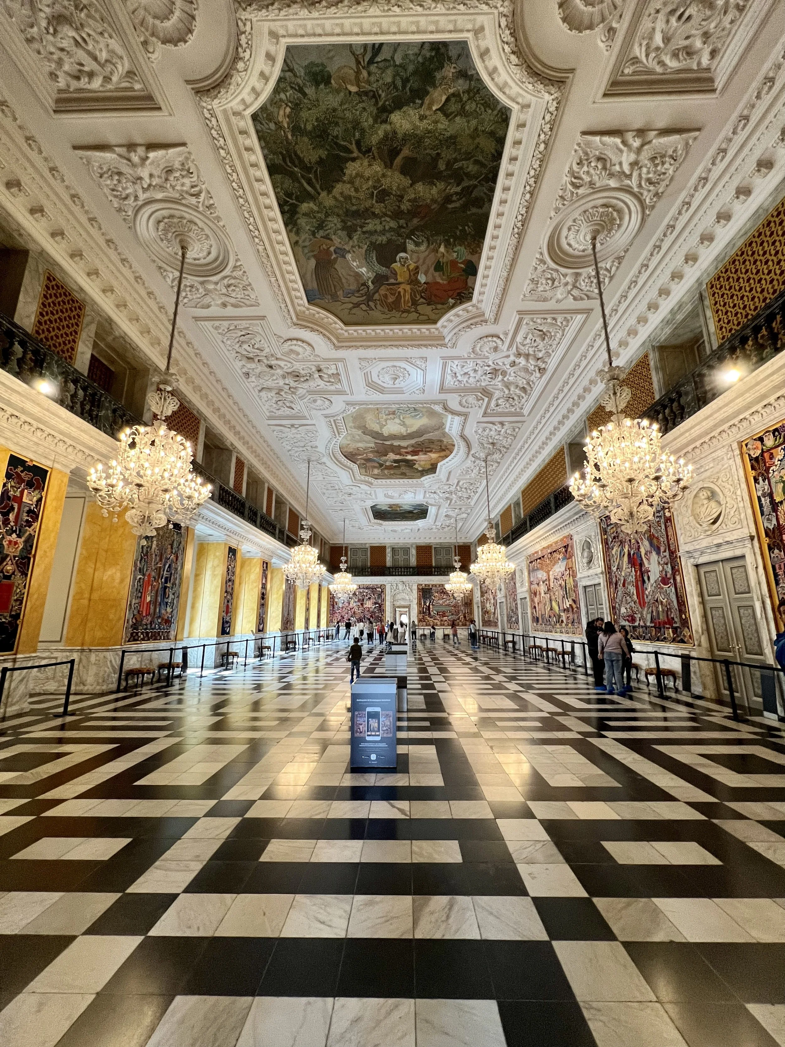We then headed straight to our next stop: Christianborg Palace and used our passes again. The Christiansborg Palace is a survivor. Built grand in the Baroque style in the 1730s, it was the largest palace in Northern Europe. But a fire in 1794 reduced it to ashes. Rebuilt in the neoclassical style, it faced another fiery fate in 1884. The current palace, finished in 1928, blends architectural styles and now houses the Danish government, a symbol of both resilience and power. Here, you are able to head down to the old castle ruins and learn a lot about the history of the palace. The major ruins include: Bishop Absalon's Castle (1167): Archaeological finds reveal the earliest structure on the site was a castle built by Bishop Absalon in the 12th century. It was located on a tiny island off the harbor.Copenhagen Castle (14th-18th Century): Later, a larger Copenhagen Castle was built on the same spot, incorporating some elements of Absalon's castle. This castle stood until the construction of the first Christiansborg Palace. After absorbing that history you can tour the current palace (heads up you must wear booties.). The palace is very ornately decorated and some of the rooms are truly impressive. The art, tapestries, furniture is also in immaculate condition and you can spend hours wandering around here. Afterward, you can head out to the royal stables. It does have different hours than the Palace so you might want to plan accordingly. We didn't wait for it to open but did get to see some equestrians working their horses.