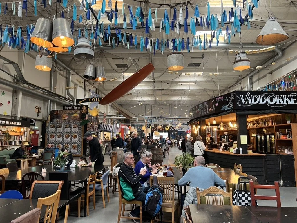 We woke up and checked out of the hotel and headed toward Kronborg Castle which rose from a tiny 15th-century fort to a powerful Renaissance symbol. Shakespeare's Hamlet found its Elsinore inspiration here! After facing fire and war, it's now a UNESCO treasure. This castle has a mote and it was originally built to control access to the Baltic Sea. Compared to the other castles we saw, it had much less furniture. It did have a lot of art, some thrones, and some underground tunnels. The gift shop was huge with a lot of Shakespeare references. Right around the parking area was a few shops and places to eat. It was nearing lunch so Vaerfetets Madmarked. This was maybe the coolest find for food. The inside has food stalls with international cuisine: greek, Italian, Asian, etc... They have several couches, armchairs, tables. It's cozy and the food was delicious. Most of the food looked so good that it was difficult to decide on what it eat. They also have adult beverages to enjoy.