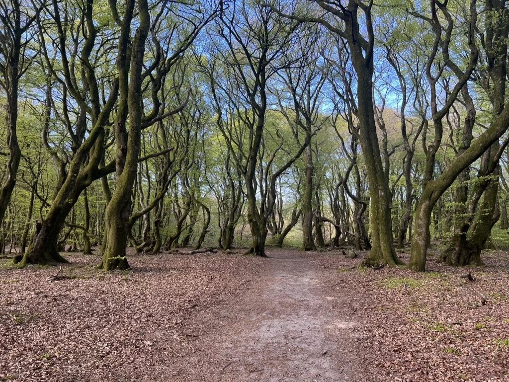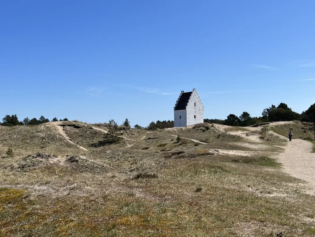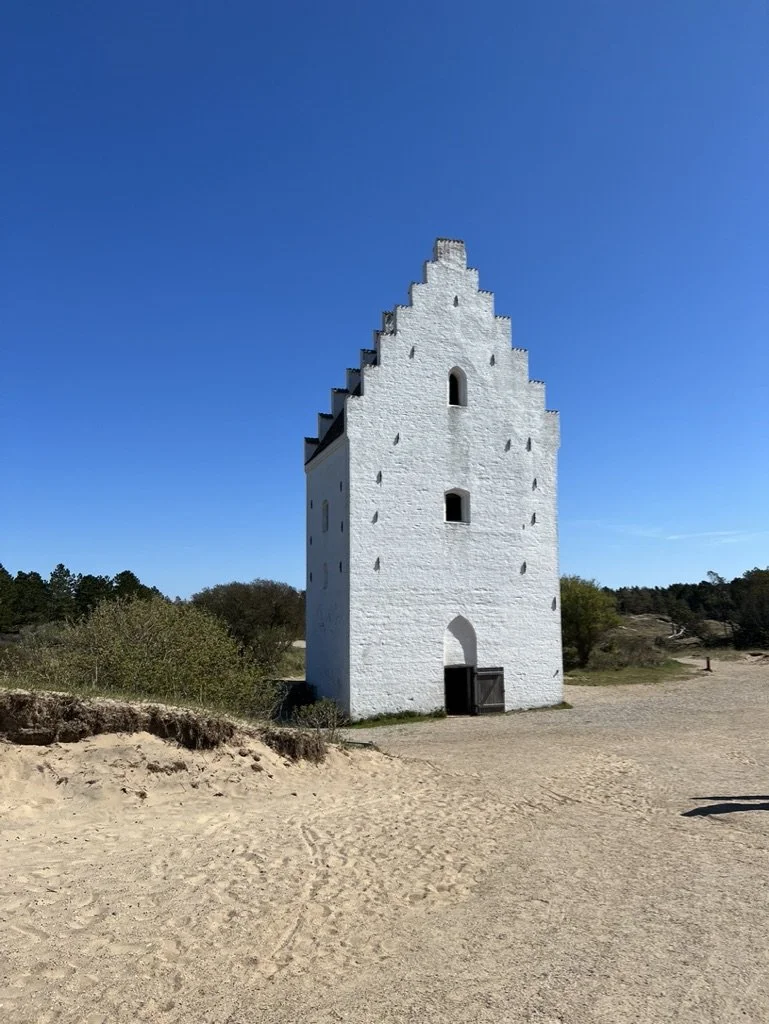 From there we drove to the sand-covered church officially named Den Tilsandede Kirke. It was buried by drifting sand in the 18th century. The church was built in the late 14th century and was the largest church in Vendsyssel at the time. The oldest literature about this church dates to 1387 and it was dedicated to Saint Laurence. It has been rebuilt a way times and eventually buried. They left the tower as a sea mark. There is a parking lot and it's a pretty easy walk to the church. You can enter the tower although it is small and nothing too interesting to inside. We made a quick stop at Rabjerg Mile which is Europe's largest moving dune in northern Jutland, Denmark. This 40-meter tall sand giant swallows everything in its path as it marches 15 meters northeastward each year, creating a constantly shifting landscape. Despite the harsh environment, plants and insects thrive here. Again, there was parking in several locations and a pretty steep climb up a dune. We didn't spend much time here but it was a cool little stop to see one of "Europe's Largest" landmarks. We detoured to Rubjerg Knude Lighthouse which is a landlocked lighthouse for a reason: It was first lit on December 27, 1900 and built to aid navigation for ships traveling in the Skagerrak Sea. However, due to severe coastal erosion, the sand dunes around the lighthouse began to shift. By the 1990s, the shifting sands had become a threat to the lighthouse's stability. In 2019, the lighthouse was relocated inland which is where it remains. The decision to move it was to prevent it from collapsing into the sea. The parking area is about 1/2 mile away and you pass some sheep. Next on the list was Saltum Strand. It is known for its fine, white sand, wide dunes, and clean water. The beach is also a popular spot for swimming, sunbathing, and windsurfing. It is a beach that you can drive on so we parked and just hung out enjoying the view as it was a bit too cold to partake in any water activities. Afterward, we headed out into nature at Rold Skov. The forest is one of the largest in Denmark and it sits on a high-lying moraine plateau formed by glaciers over 18,000 years ago. The landscape itself was shaped by the retreating ice sheets. It is 8,000 acres and a lot of trails for hiking, biking, horse back riding, etc. We found a parking area and took an hour to hike around in the woods. It was yet another peaceful activity and we never saw another person. It was a long day of adventure so we found a restaurant along the route back to the hotel and showered and relaxed for a bit before heading to bed.