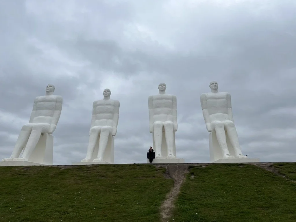 We started to head West and stopped at Henne Strand. Honestly, it wasn't the best day and the view wasn't that great. It was windy and cold so we walked to the beach and almost immediately got back in the car to drive to the next stop. We headed to Daemningsvejen near Filso lake. This was a nature preserve and it had some trails and wildlife. We took a short trail because again it was cold and windy, not the most enjoyable weather to be enjoying a leisure day at the lake. It was pretty to see the Lake and I'd imagaine when the flowers are blooming, it would be quite beautiful. We headed on to the Blavand Lighthouse which is Denmark's westernmost point, is a 39-meter tall historic landmark built in 1900. It guides ships and offers stunning views (climbable!) of the coastline. It isn't open to climb until June but we were able to get close to it. Close to the lighthouse was Muldyr Bunkerne where two World War II bunkers located. They were constructed in 1942 by the German occupying forces during the war and were intended to serve as coastal defense fortifications. They were equipped with artillery guns and machine guns, and they were manned by German soldiers. After the war, they fell into disrepair but were restored and opened to the public in the 1990's. If you like WWII history, it's probably worth a stop. If you like art, it's also worth a stop since they have added horse heads and tails. Further south from there is another art display: Men by the Sea. It is four, 9-meter tall white concrete statues of seated men looking out towards the sea. It was created by Svend Wiig Hansen and installed in 1995. It's quite an impressively large display and there is parking right by it. If you find yourself in this area, it's a quick detour and quite the sight.