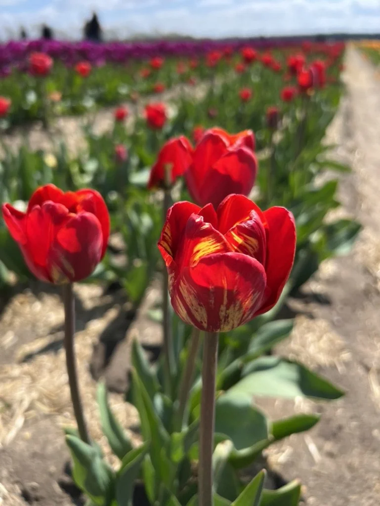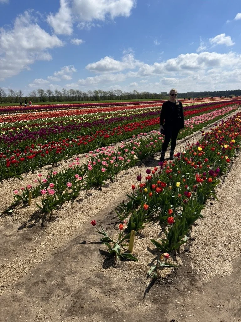 The next stop at Ribe Viking Center. It is pretty touristy with parking attendants guiding traffic into the parking lot. We walked up, checked out the gift shop and saw a bit of the "attraction", it appeared to be a reenactment of a viking village, the gift shop was pricey and you had to pay admission to wander around the village so we passed and headed into Ribe. Ribe dates back to the 8th century and is claimed to be the oldest town in Denmark. It has a medieval look and a lot of shops and restaurants. We headed to Ribe Domsogn which is the oldest cathedral in Denmark. It is also known as one of the best preserved Romanesque buildings and was built in 1150. It is hard to miss as it's a showstopper in the heart of town. We then wandered around town, ate some lunch and shopped. It was such a charming little town. On the drive back to Ansager, we stopped at Tulipaner and had perfect timing for the tulips in full bloom. You could wander the fields and take photos. It was such a cool experience and the flowers were just gorgeous. So many colors. Another stop on the way back was Kalvslund Kirke which may have been constructed around 1150. It has a beautifully maintained cemetery and landscaping. That is one theme with Denmark, all the churches have beautiful cemeteries on the premises. The exterior of all the churches we saw tend to be white and similar in style.