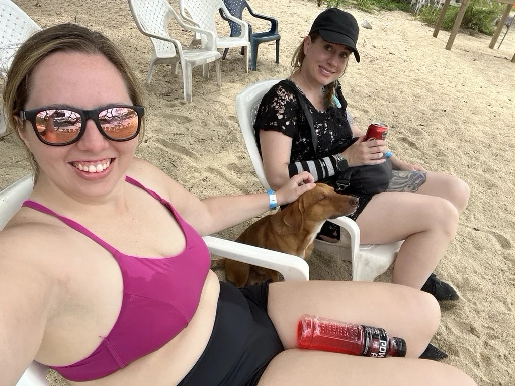 We rented a chair for 10,000 COP and settled in, hoping to relax. While the setting was beautiful, the competing music blasting from different groups around the beach made it less peaceful than we’d hoped. On the upside, we had a few adorable stray dogs wander over to say hello—though the crabs and one particularly bold praying mantis were slightly less welcome guests.