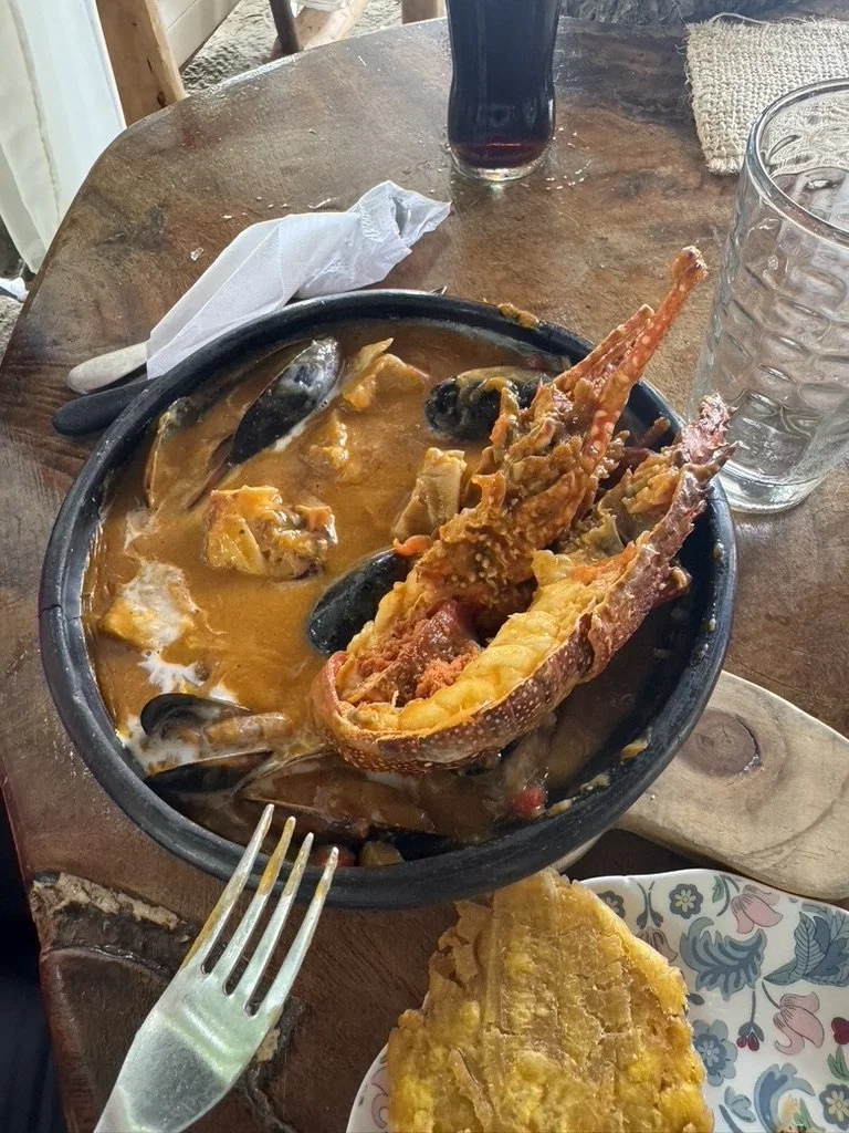 After leaving Playa Cristal, we took a 15-minute boat ride to Bahía Concha, which had a noticeably livelier vibe but wasn’t overcrowded. The moment we stepped off the boat, we were greeted by vendors selling everything from drinks and snacks to chair rentals, massages, and fresh seafood.