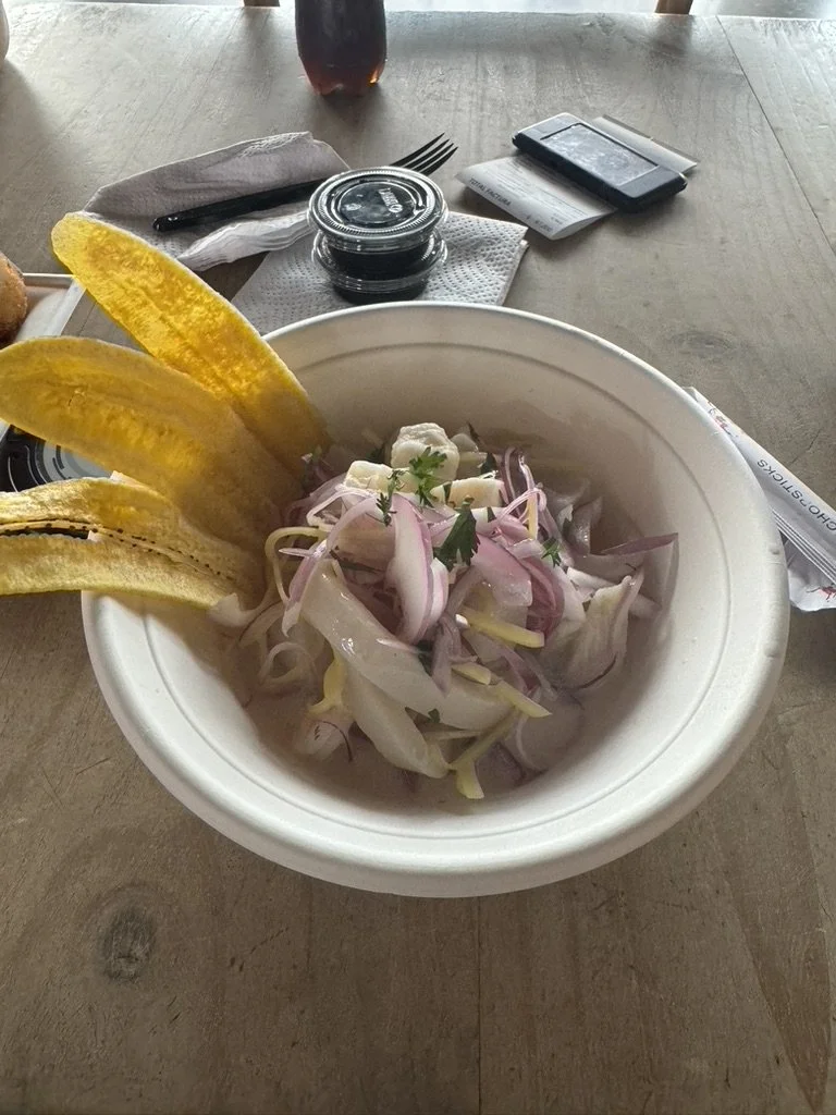 The ceviche was the standout—fresh, flavorful, and perfectly seasoned. The rest, however, was a bit underwhelming, with the buns and dumplings being the most disappointing of the bunch. Still, the energy of the space and the variety of options made it a fun stop to experience.