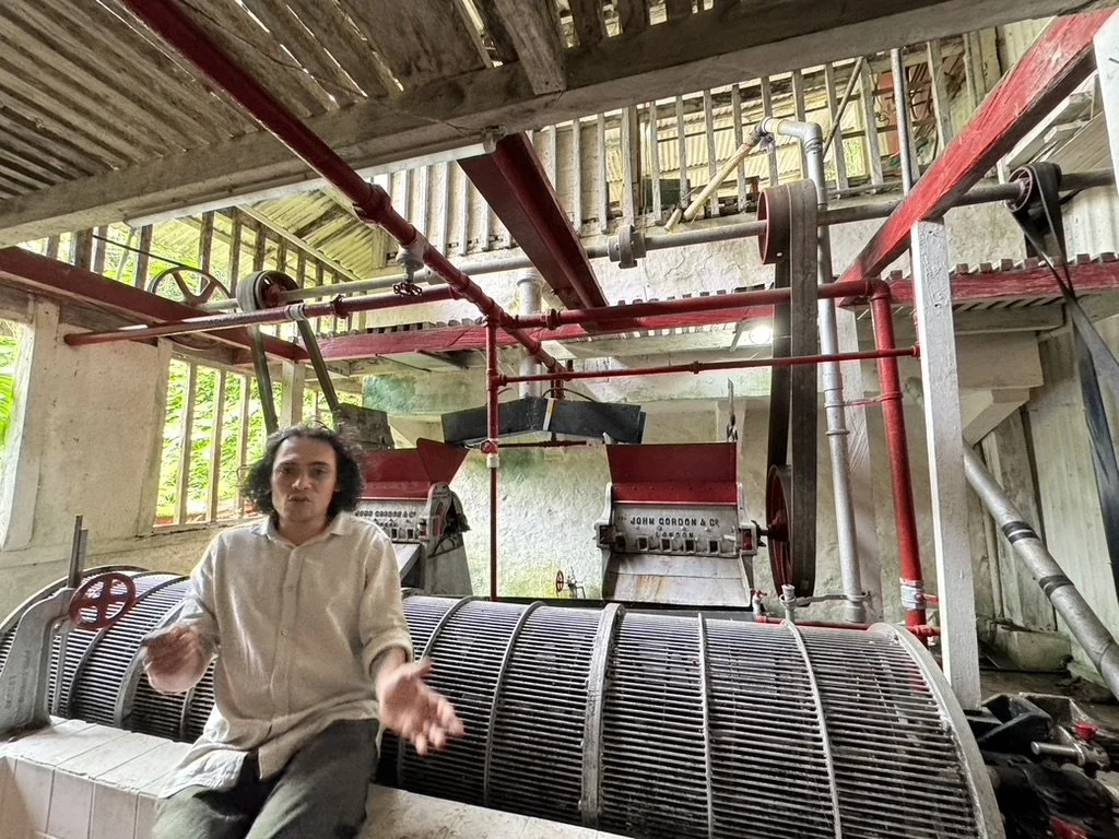One of the coolest aspects? They still use original machinery from the late 1800s, powered entirely by water from nearby mountain streams. It felt like stepping into a living museum—you could actually watch the process unfold much like it has for over a century. The air smelled like fresh coffee and damp rainforest, and the surrounding mountain views were incredible.