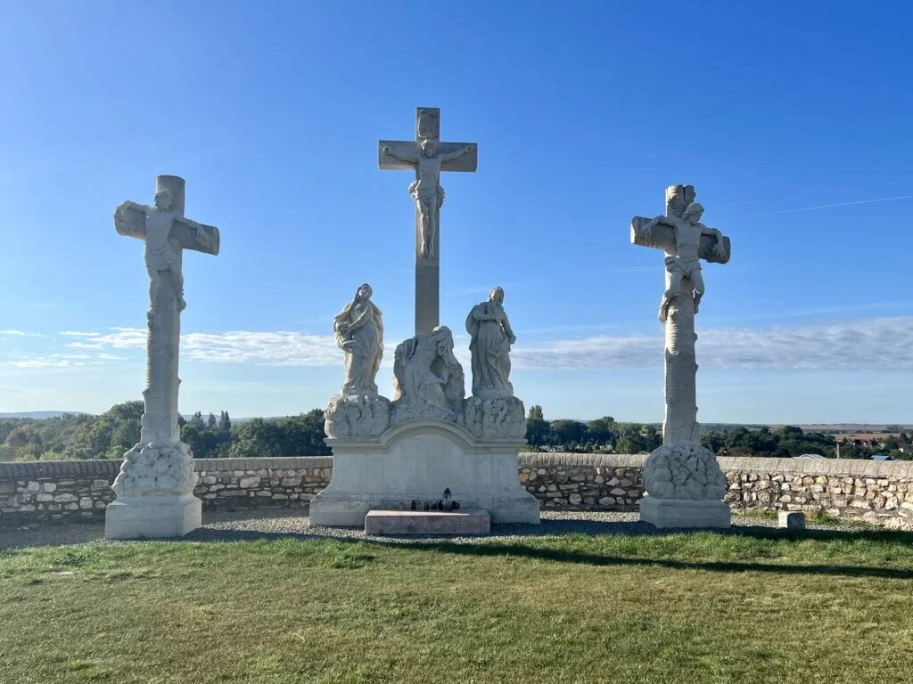 Stop 3: we headed to Tata. The town itself is adorable. We headed straight to a cluster of several sights: Geológus Kert, Geológusok Kertje, Kálvária Szoborcsoport, Fellner Jakab lookout. There is also a museum near these sights. There is a cluster of rock formations in a circle at the base. You then walk around a cliff with rock climbing ropes which leads to a sketchy staircase with even sketchier railings. Take these with caution. At the top is a large (almost life sized) statues with a view of the city. Just across from the statue is a small church. It’s a fairly quick stop to walk to the top and back but worth the stop for sure.