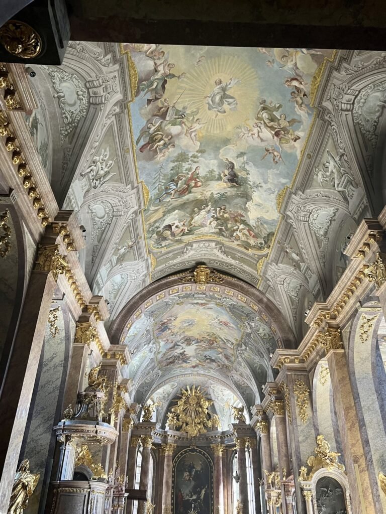 After we left, we rounded the corner to Marjan Confectionery for a sweet treat. I tried the Dobos torta which is a Hungarian cake. It was pretty good but not overalls sweet. The restaurant was really nice and had tons of cakes, cookies and ice cream to choose from. The prices were 700-1200 foint. We wandered from there to Dobo Istvan U. Which was a pedestrian street with a lot of shops and restaurants. It lead to a courtyard with a Dobó István tér statue, the Church of Anthony of Padua, and cool ornate yellow building. The Church was started in 1767 and consecrated on April 18, 1773 by Bishop Ignác Batthyány. It was expanded upon until 1792. The churches ceilings were painted, a large statue was carved, pews carved, a red marble alter was made, etc all this lavishness was controversial due to the surrounding poverty. it is the only Baroque church with a curved facade in Hungary. The church was damaged in an 1827 fire. We head d back toward our car and headed toward Miskolctapolca Cave Bath. The first spa was built in 1743 and later renovated in 1837. The first caves were built in 1959 and extended until 2005. It features multiple pools connected by streams and some outdoor options in the summer which were closed during our visit. It was cool aesthetically but overcrowded and failed a bit short. It wasn’t overly relaxing due to the crowds and the hotter pools were completely full. The water was luke warm in the other pools. They did have lights to add a nice aesthetic. Some reviews complained about it being dirty which we did not experience and that lockers were mostly now functioning. We were given bracelets that opened our lockers. It was easy and we didn’t have a problem finding an open locker. They don’t provide towels so bring your own. Alternatively, they sell some for absorbent prices in the first shop (1,990 for a large hand towel, 2,990 for a medium size towel and 7,000 for a Disney large towel). The parking was at the neighboring hotel and costs $2800 foint. There was a parking attendant so change could be provided. The facility offers massages, mud, etc for additional fees and also had a sauna for an additional cost. They have a discounted rate after 3pm. It’s a typical tourist money making operation but unique enough to be worth a trip.