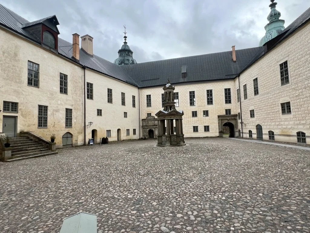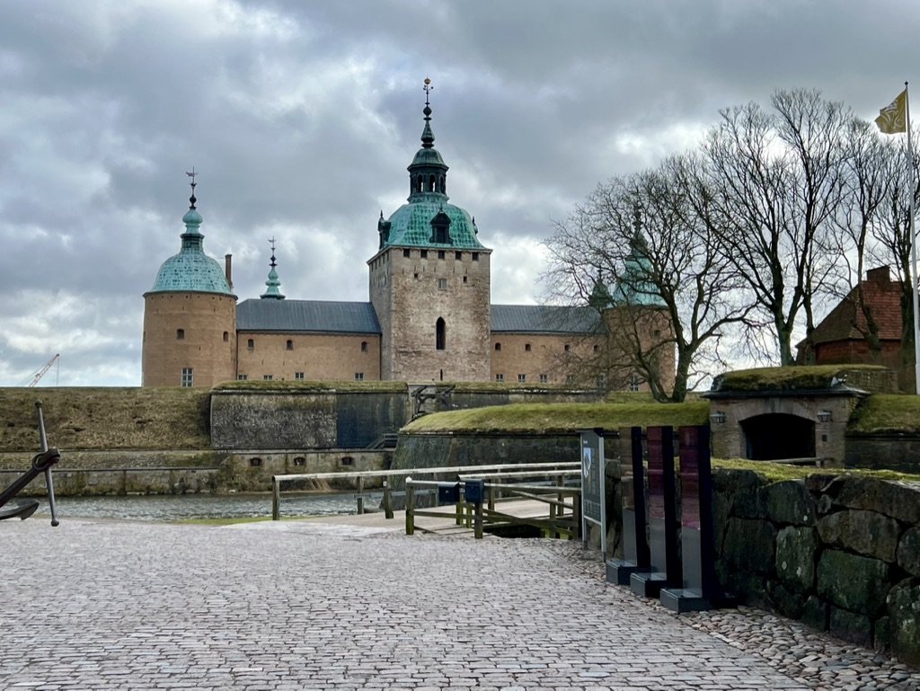 The slott had a few buildings on site and a ruin on top of a hill. There was also a really lovely view of the Sea from on top. Nearby is a pedestrian bridge so If you want to make a hike of it, there is a nice walk to be had. This day was luckily dry but windy and cold. At this point we were hungry and attempted a few restaurants along the way but all of them were closed which I guess is part of being a tourist in the off season. Alas, we ended up at McDonalds which was interesting as the have some different items such as donuts, Oreo frappes and bags of carrots on the menu. We dined in and attempted to hook up our electric charging but sadly you need an app and/or subscription and we were unable to download the apps on the apple store being we have international numbers. We headed to the Kalmar Slott: