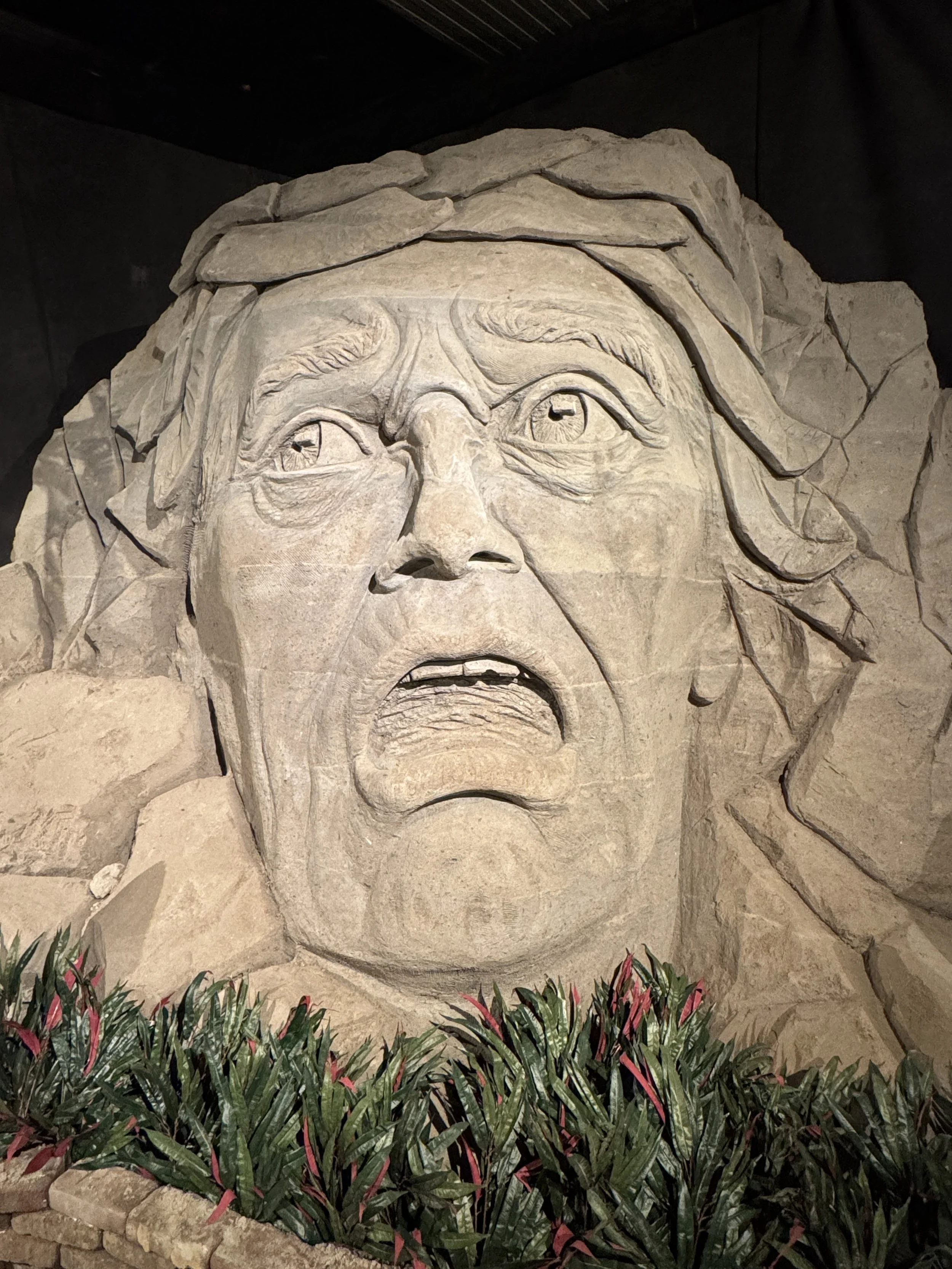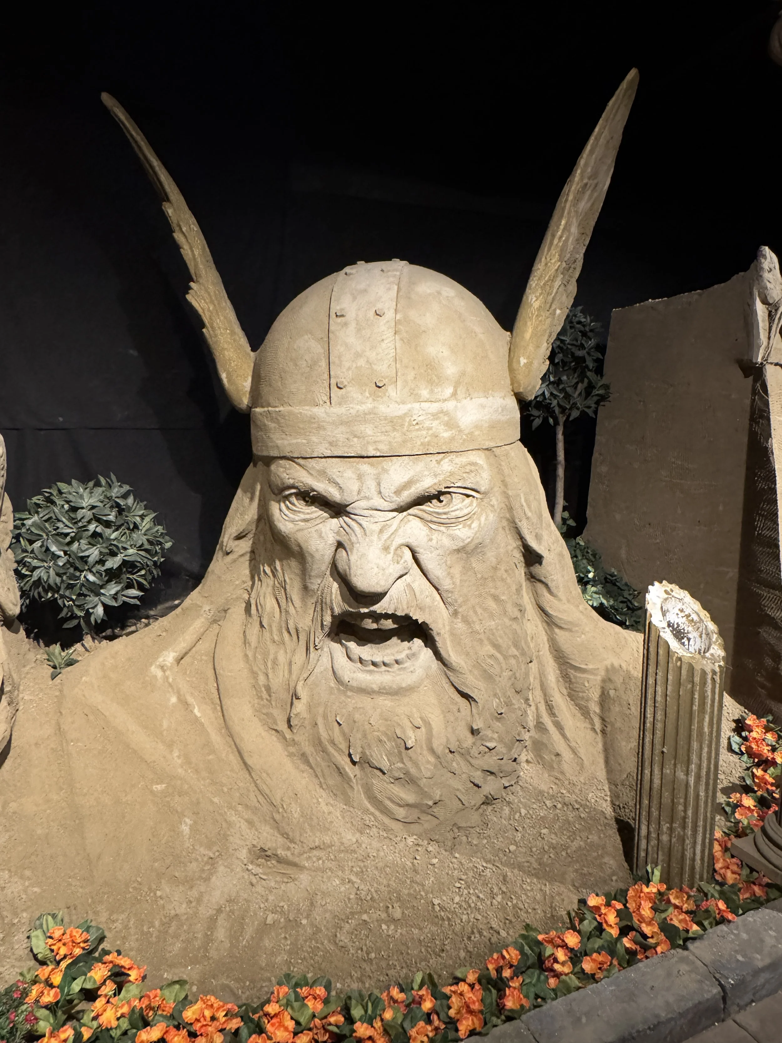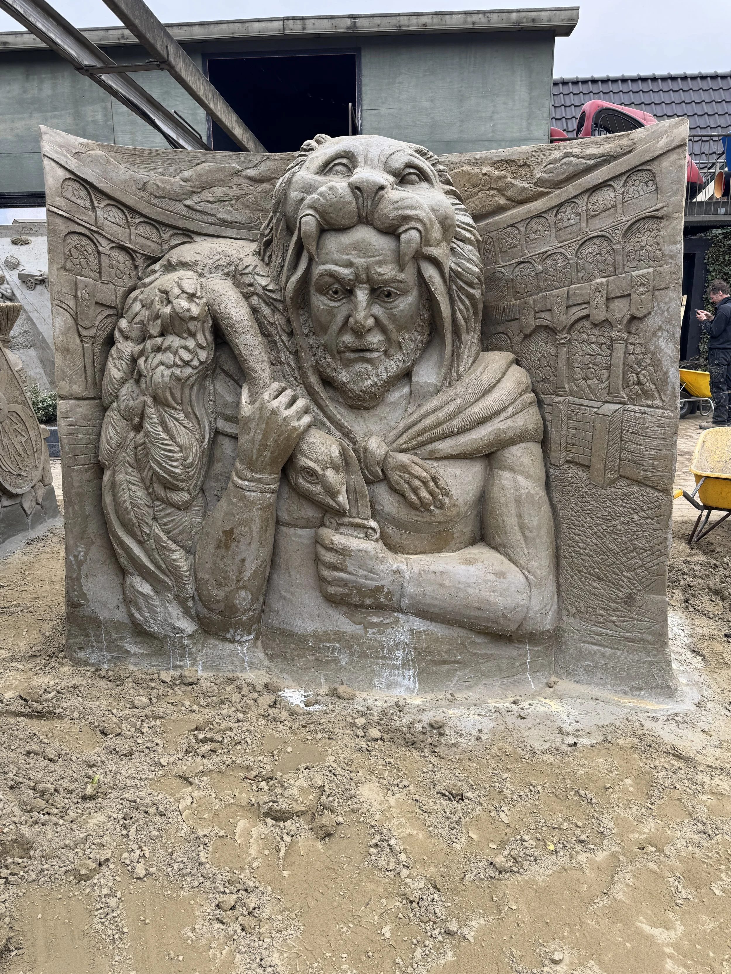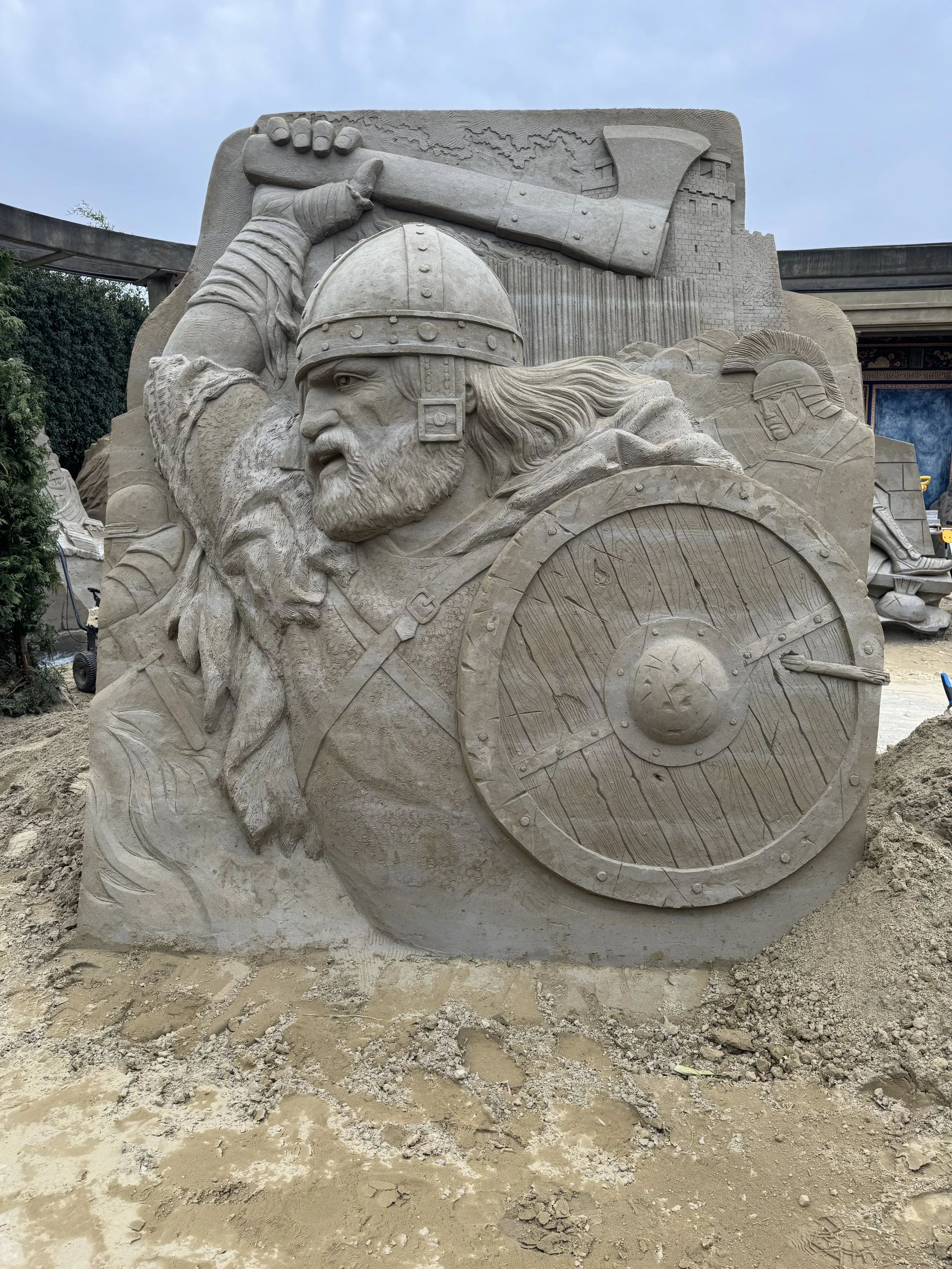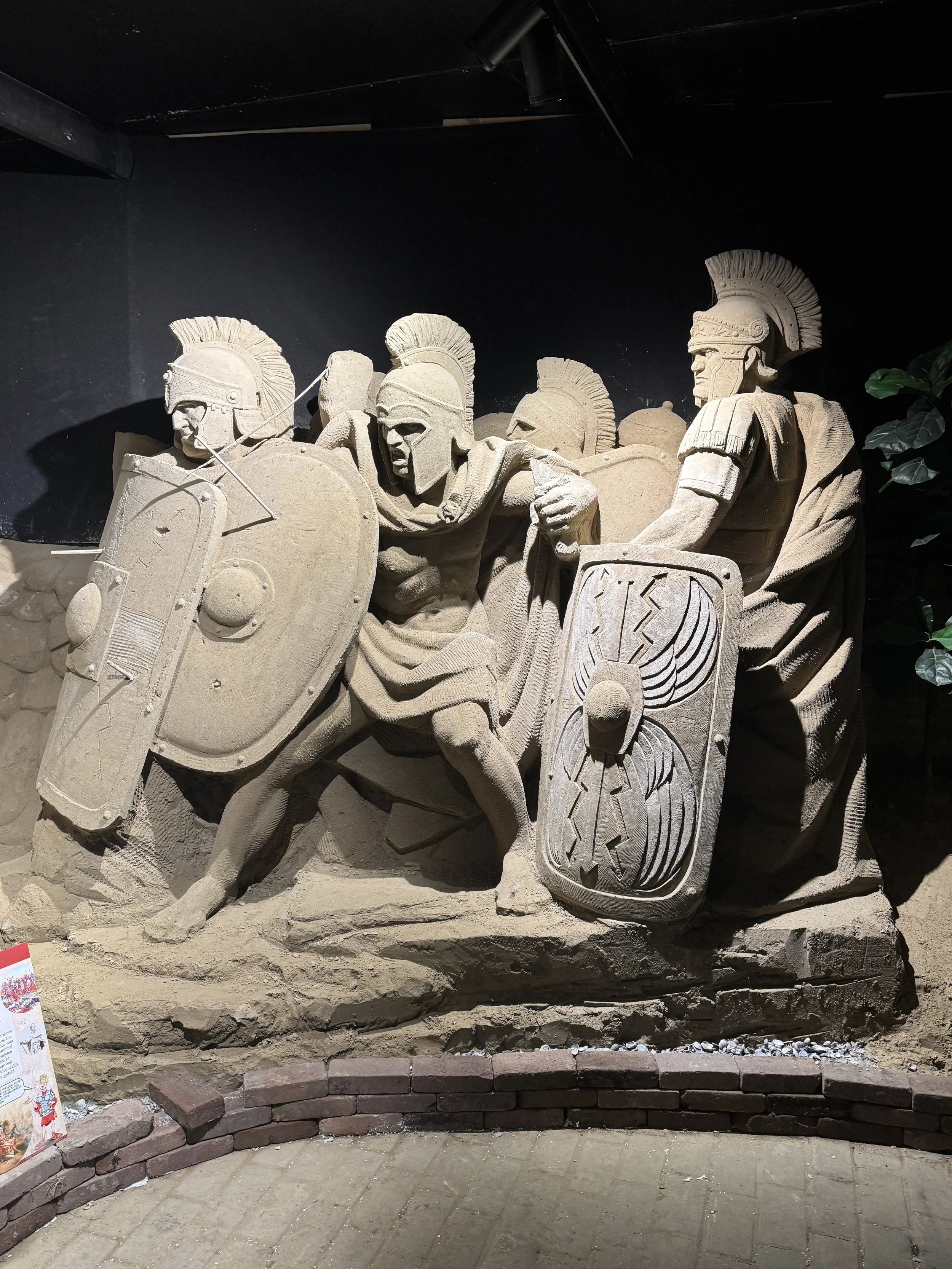 We hightailed it to Veluwe for the Sand Sculpture Festival, an annual outdoor festival in Garderen featuring massive, intricately carved sand sculptures that depict historical themes, stories, and cultural scenes, blending art, storytelling, and impressive craftsmanship. We were lucky enough to catch it, and it was Roman-themed. It was impressive, with dozens, if not close to 100, sculptures made of wood, sand, and bronze. Some of these were lifelike, and the faces were able to emote. This is my second one, and I’m still in awe. The entry area also has carved sculptures with a high skill level, and even the parking lot was decorated. They even had a man making one onsite.