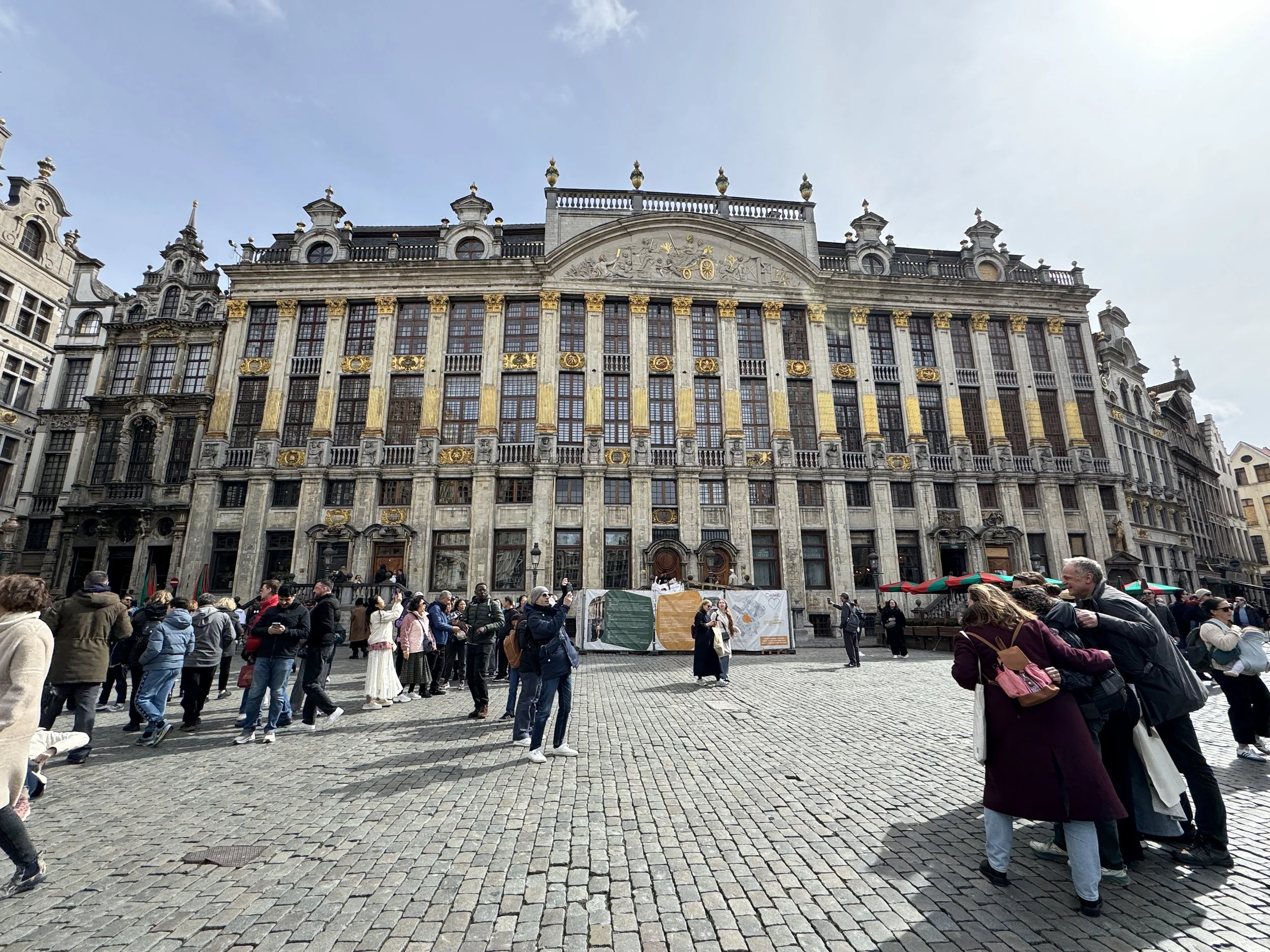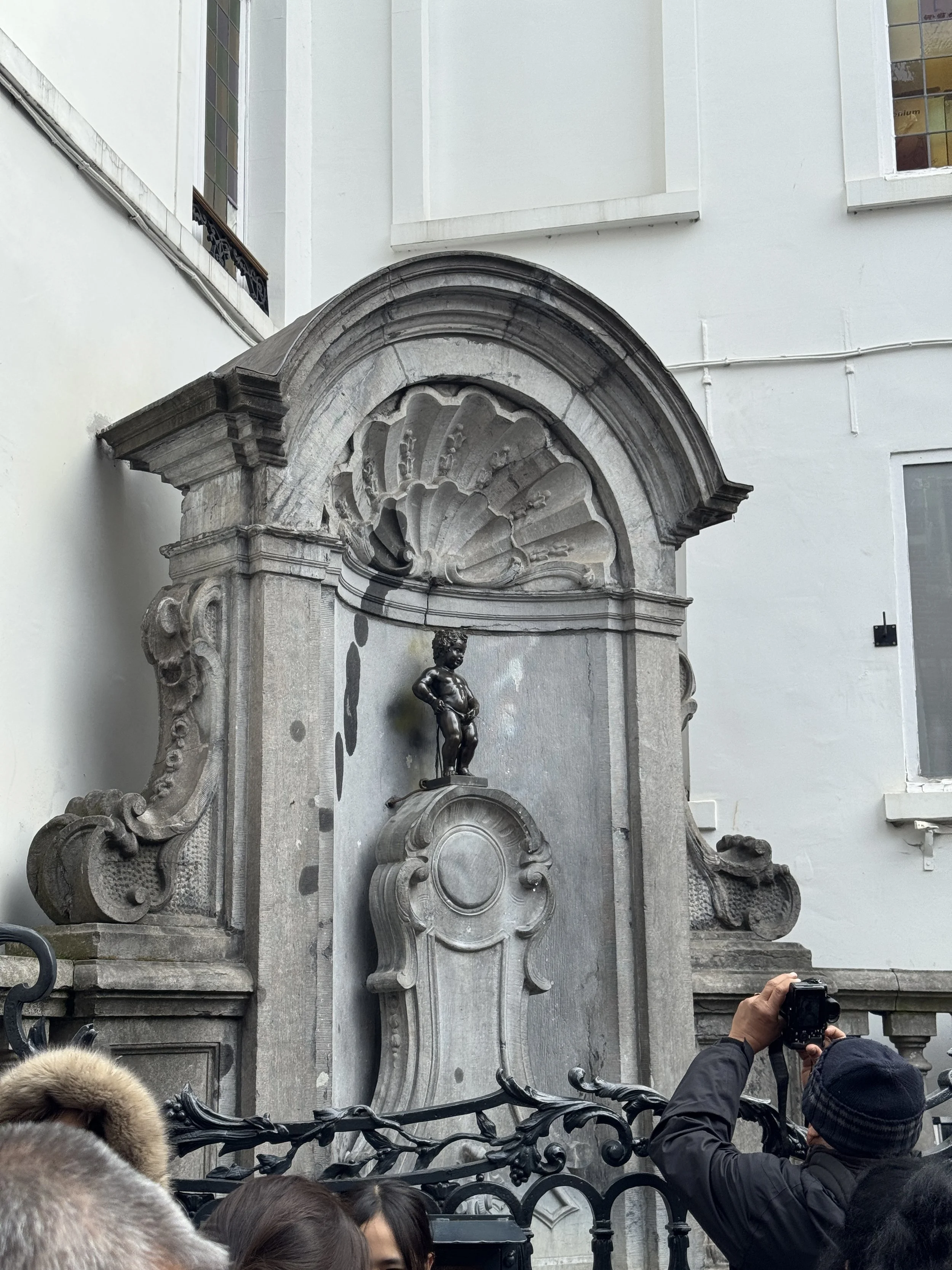 Following the crowds (and a buzzing sound), we found Manneken Pis. It’s exactly what you think—a small statue of a boy peeing into a fountain. Created in 1619 by sculptor Jérôme Duquesnoy, it’s become one of Brussels’ most iconic symbols. There are several legends behind it, including one where a boy saved the city by putting out a fire this way. Over time, it’s been stolen multiple times, dressed in hundreds of costumes, and embraced as a symbol of the city’s humor.