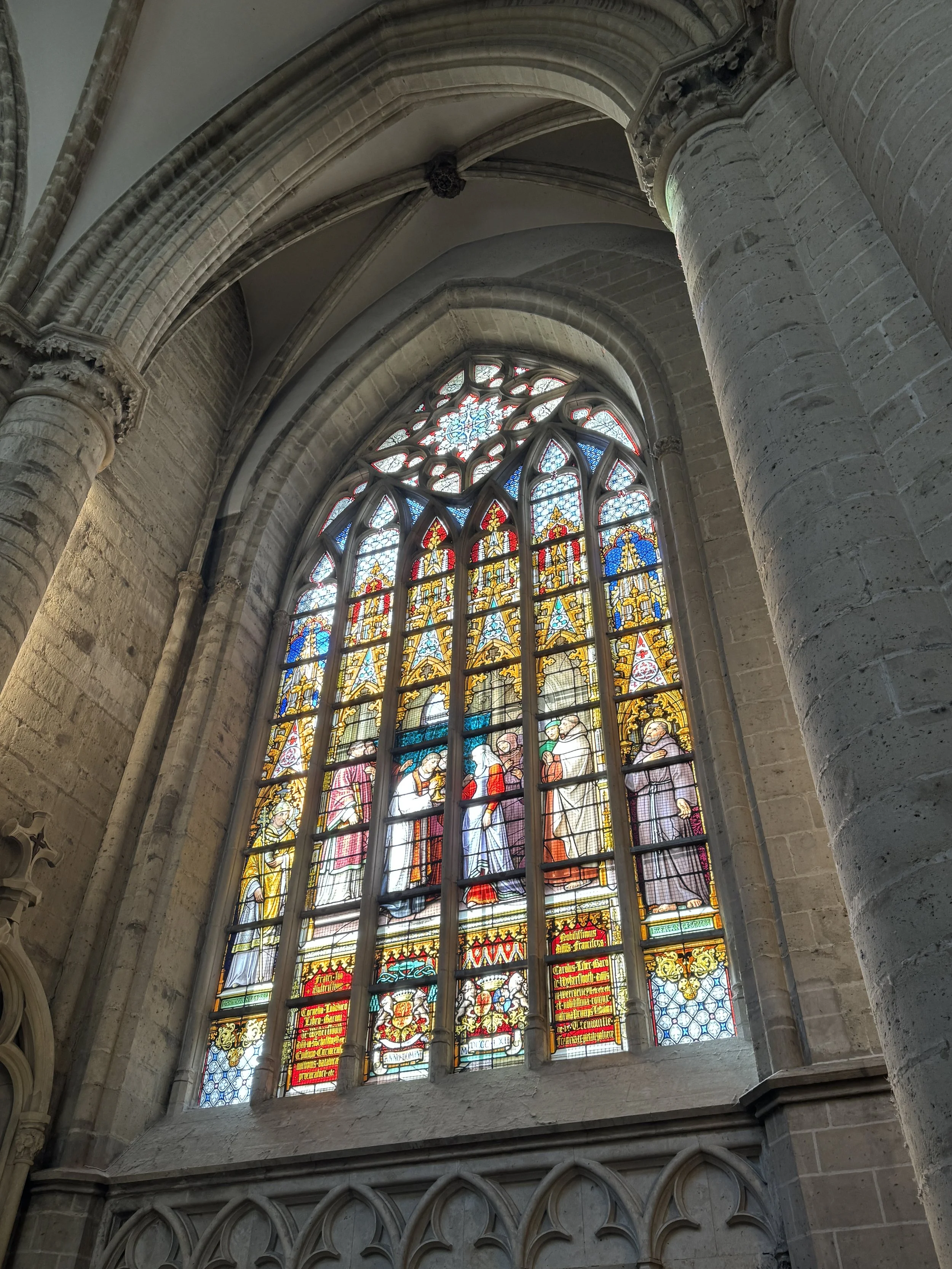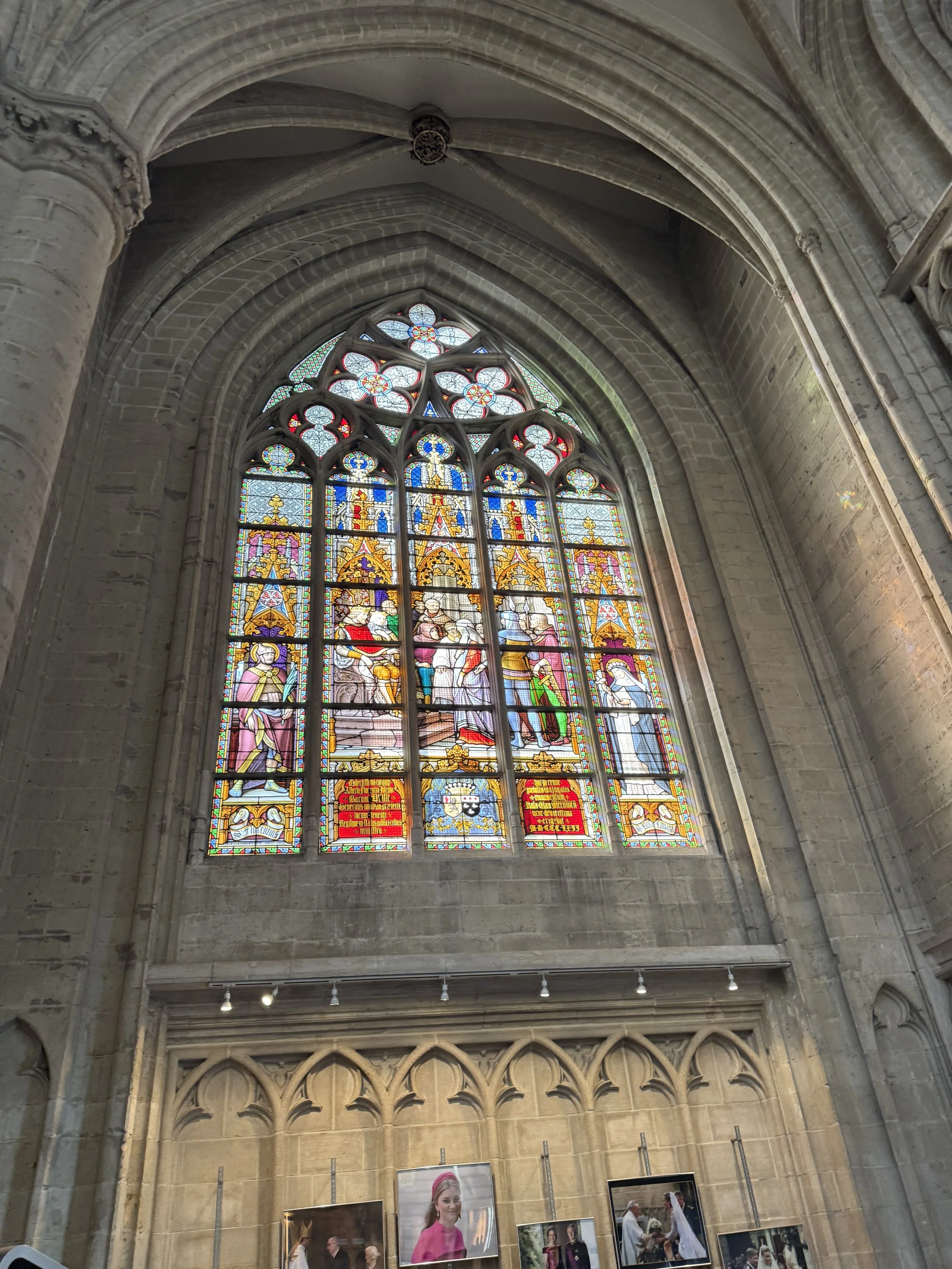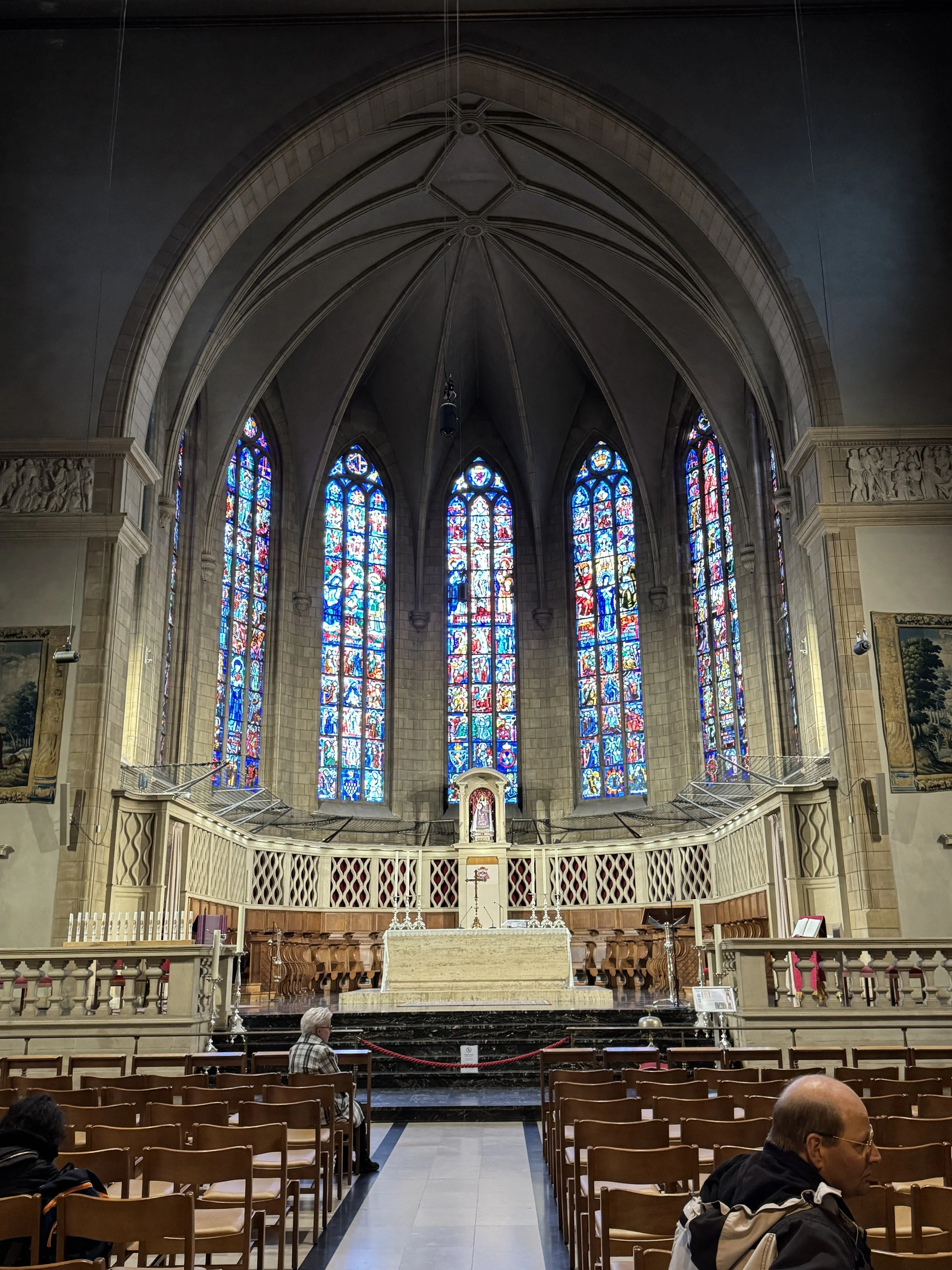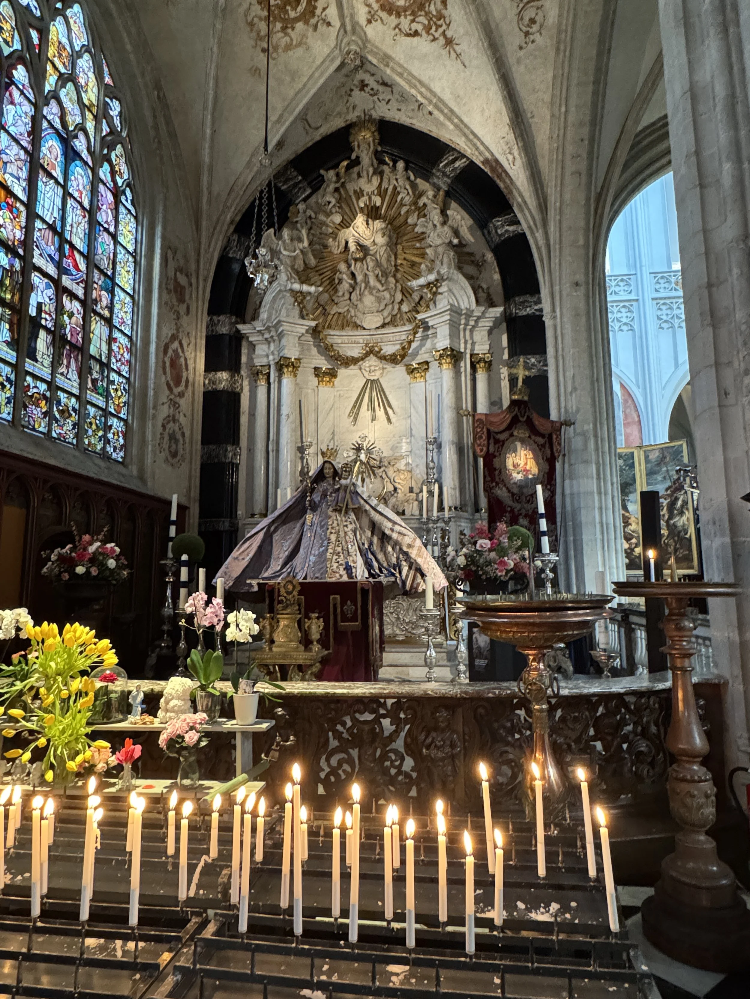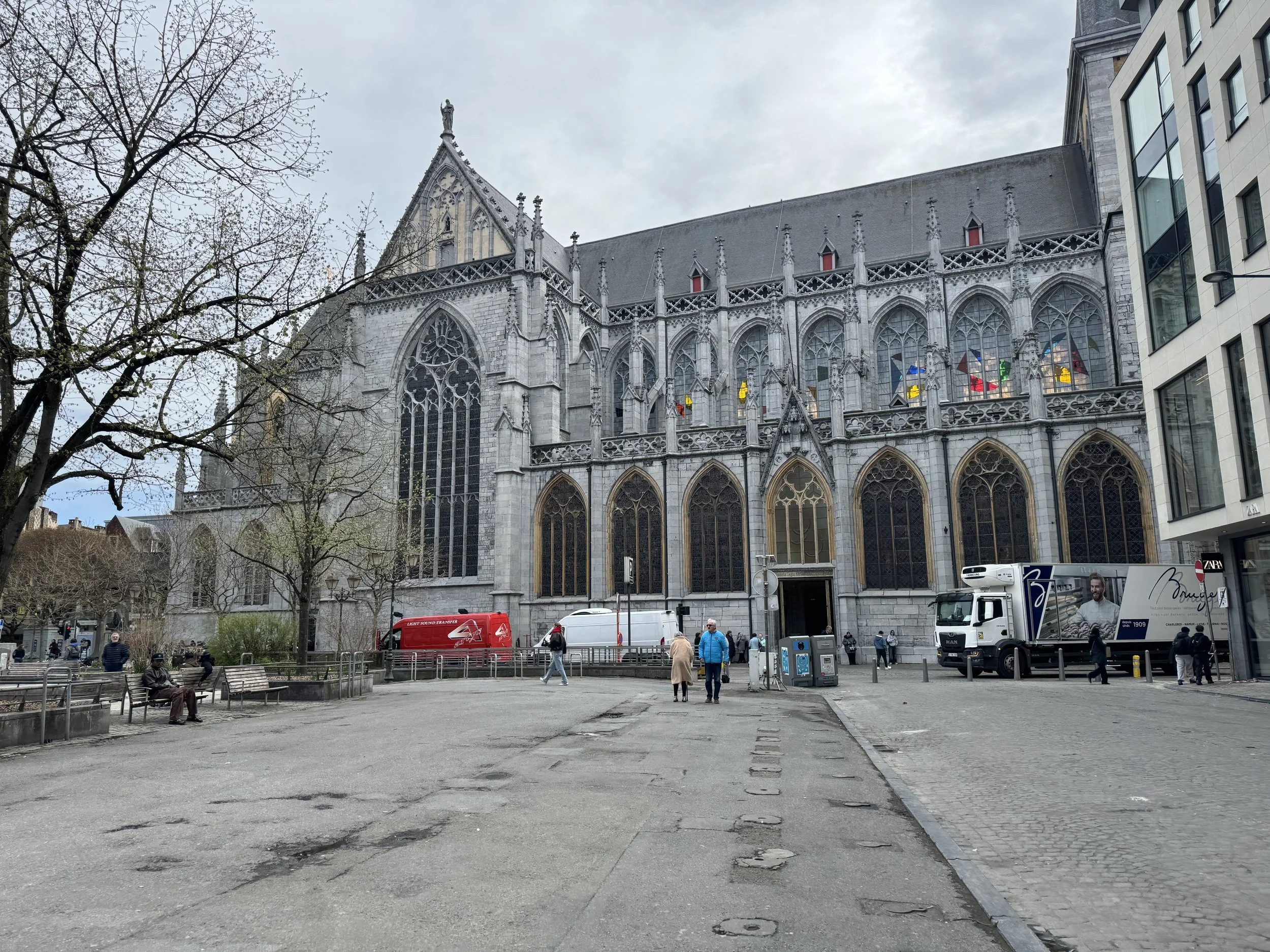 Next stop was Église Notre-Dame des Victoires au Sablon, built in the 15th century. It started as a chapel for a crossbowmen’s guild and became one of the finest examples of Brabantine Gothic architecture. Its name comes from a legend involving a sacred statue of the Virgin Mary. It’s tied to elite guilds and has beautiful stained glass. The exterior and interior were both impressive. It’s open to the public, but some areas are reserved for prayer.