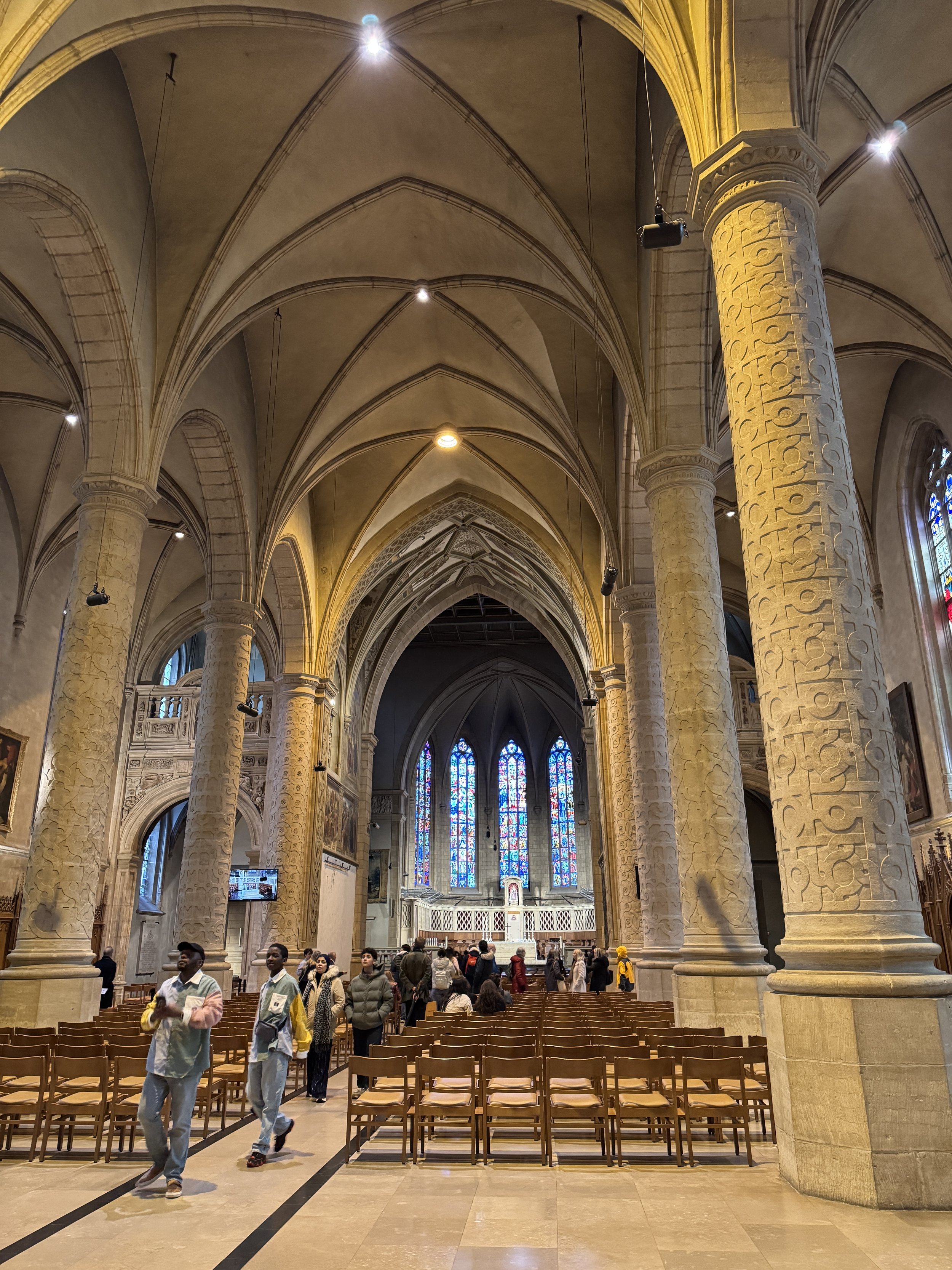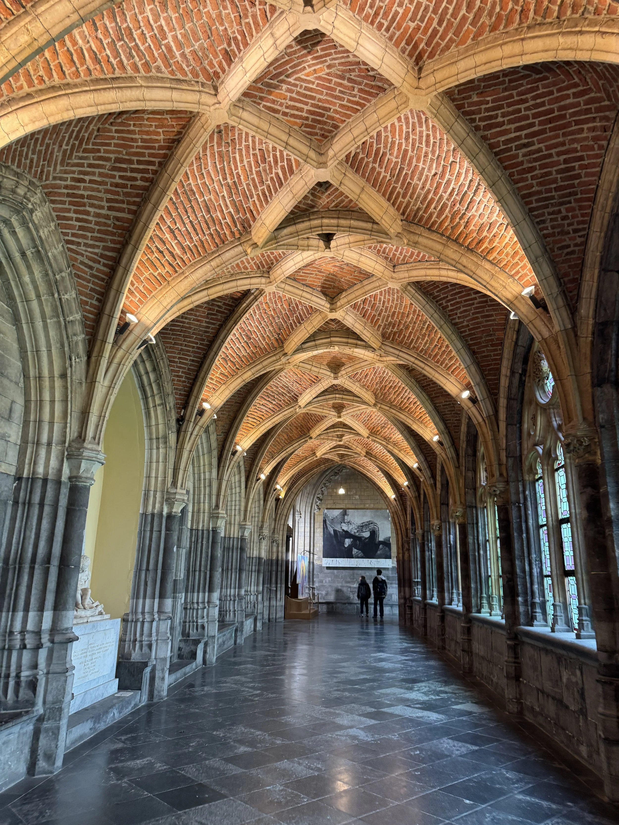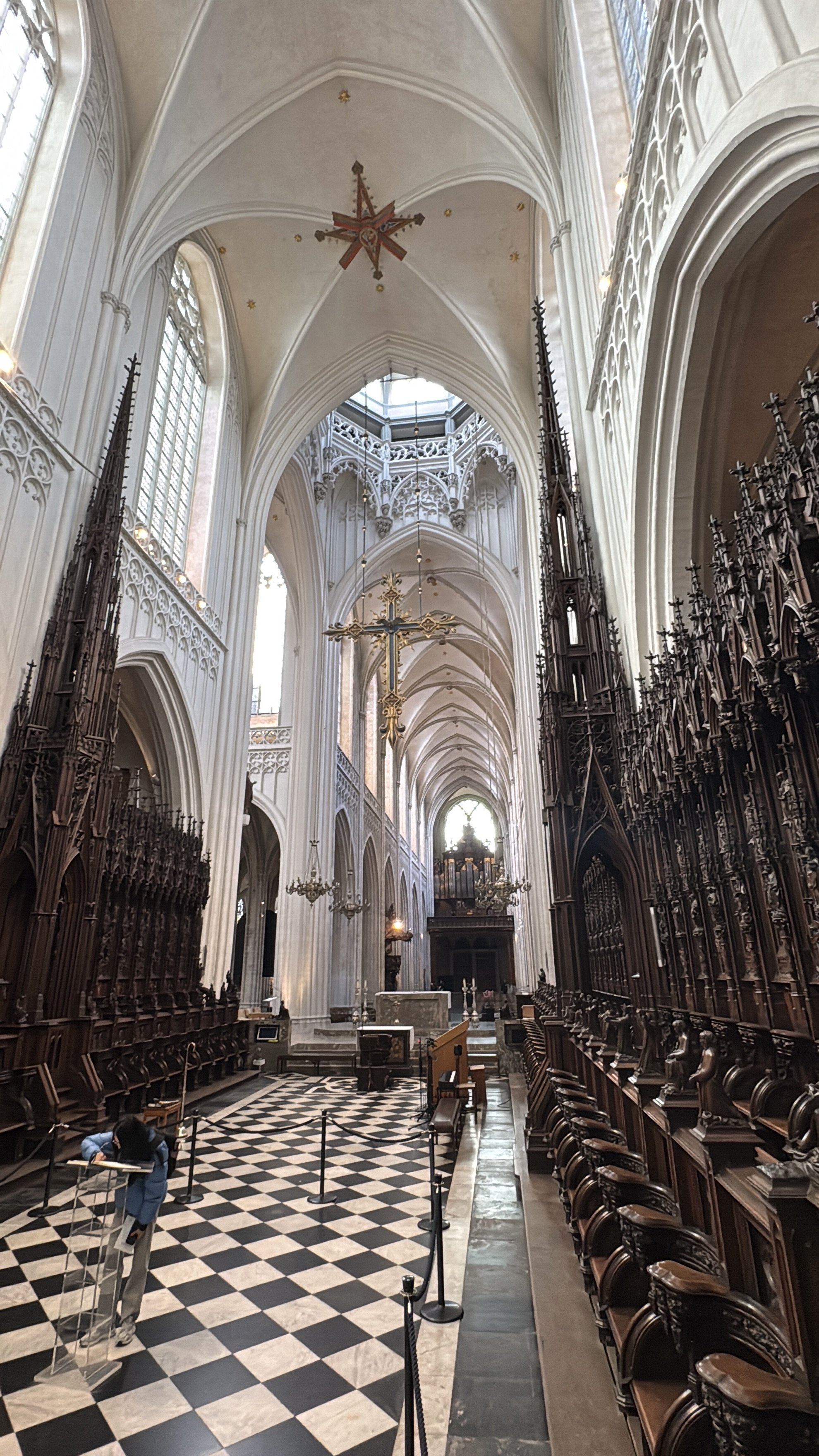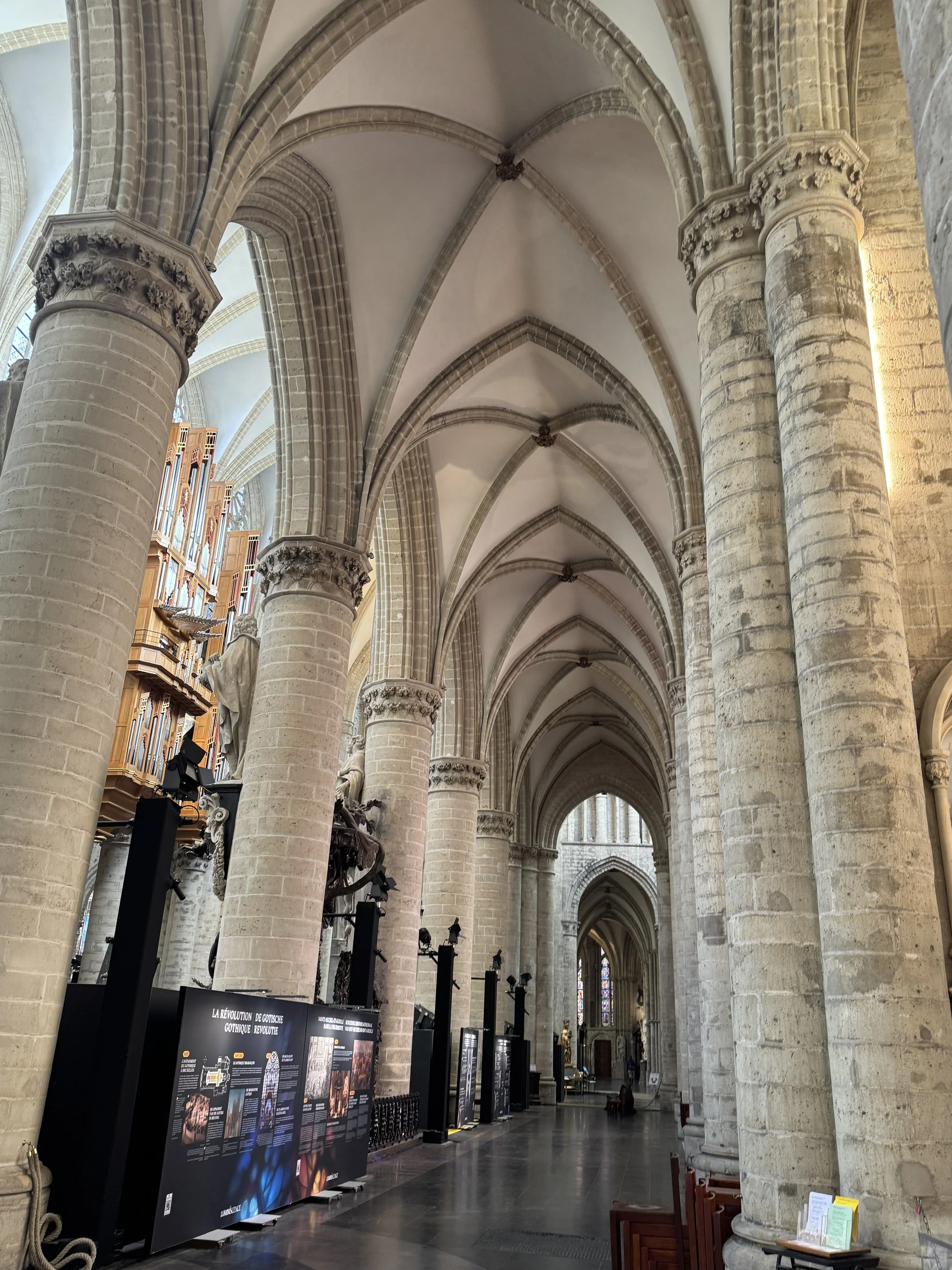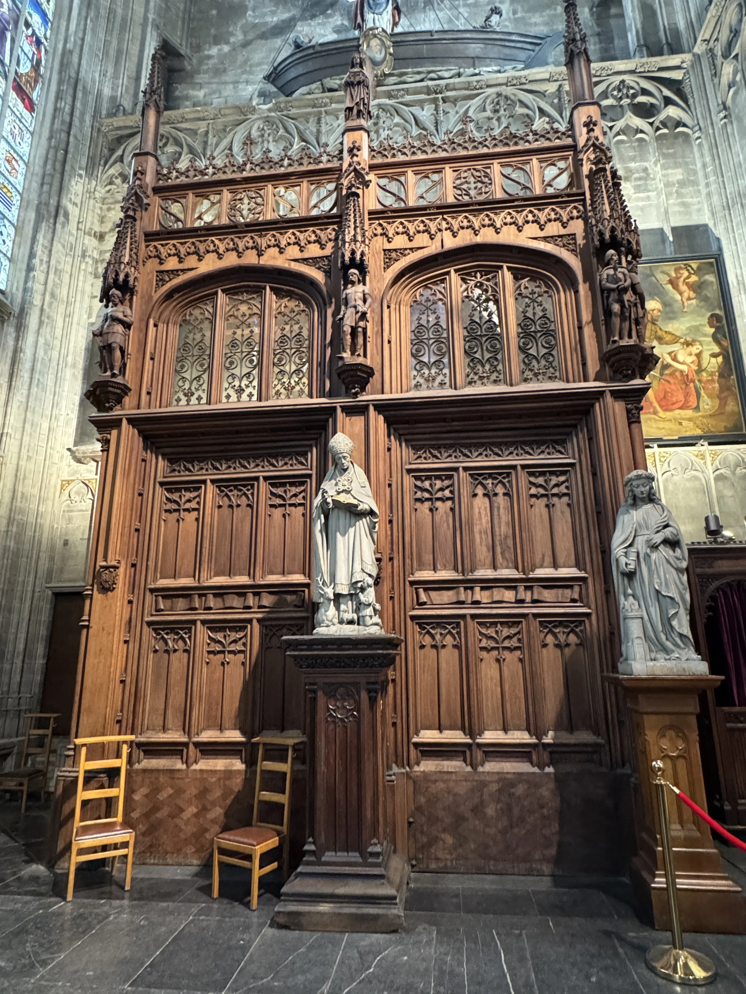 Next stop was Église Notre-Dame des Victoires au Sablon, built in the 15th century. It started as a chapel for a crossbowmen’s guild and became one of the finest examples of Brabantine Gothic architecture. Its name comes from a legend involving a sacred statue of the Virgin Mary. It’s tied to elite guilds and has beautiful stained glass. The exterior and interior were both impressive. It’s open to the public, but some areas are reserved for prayer.