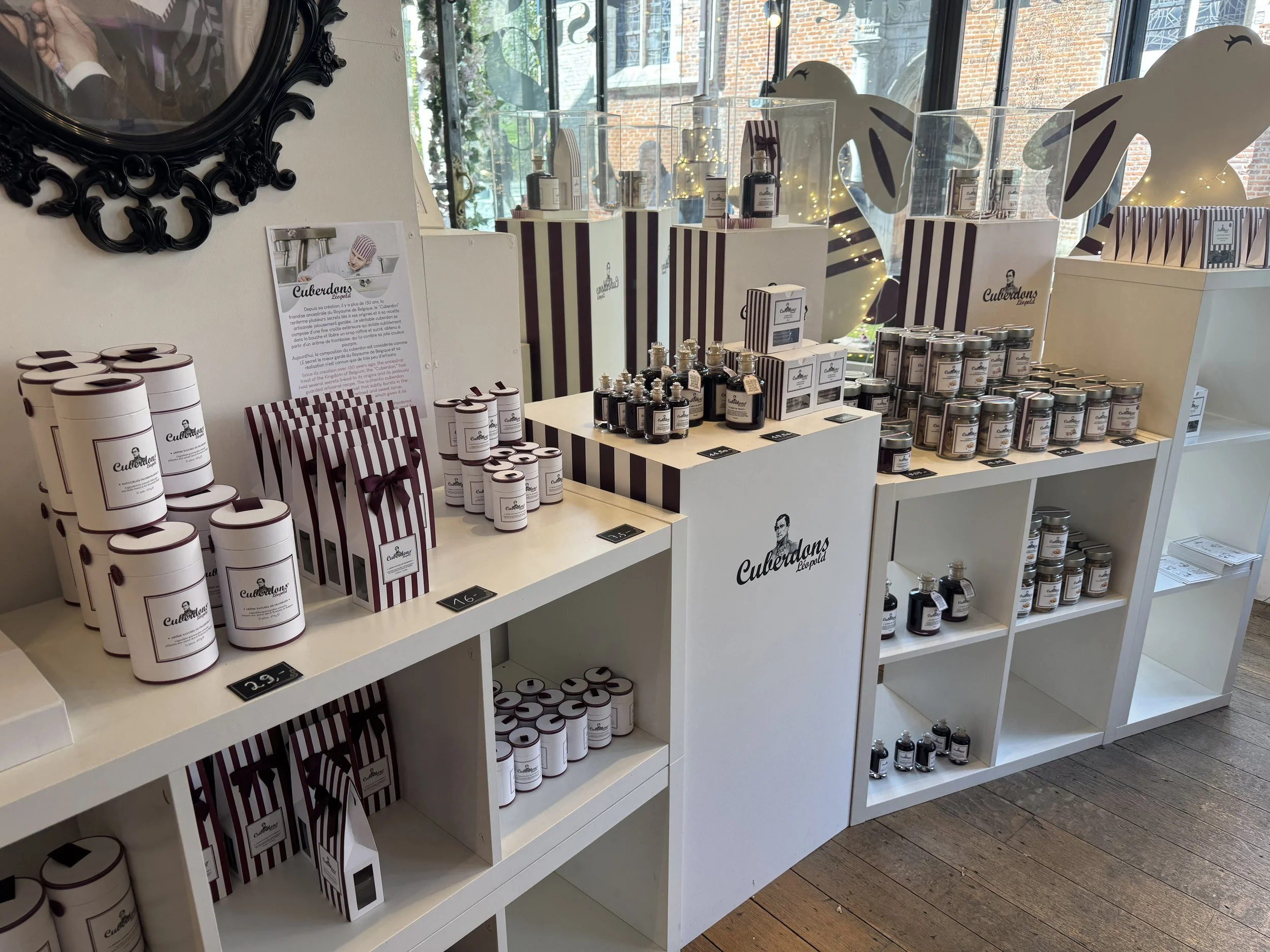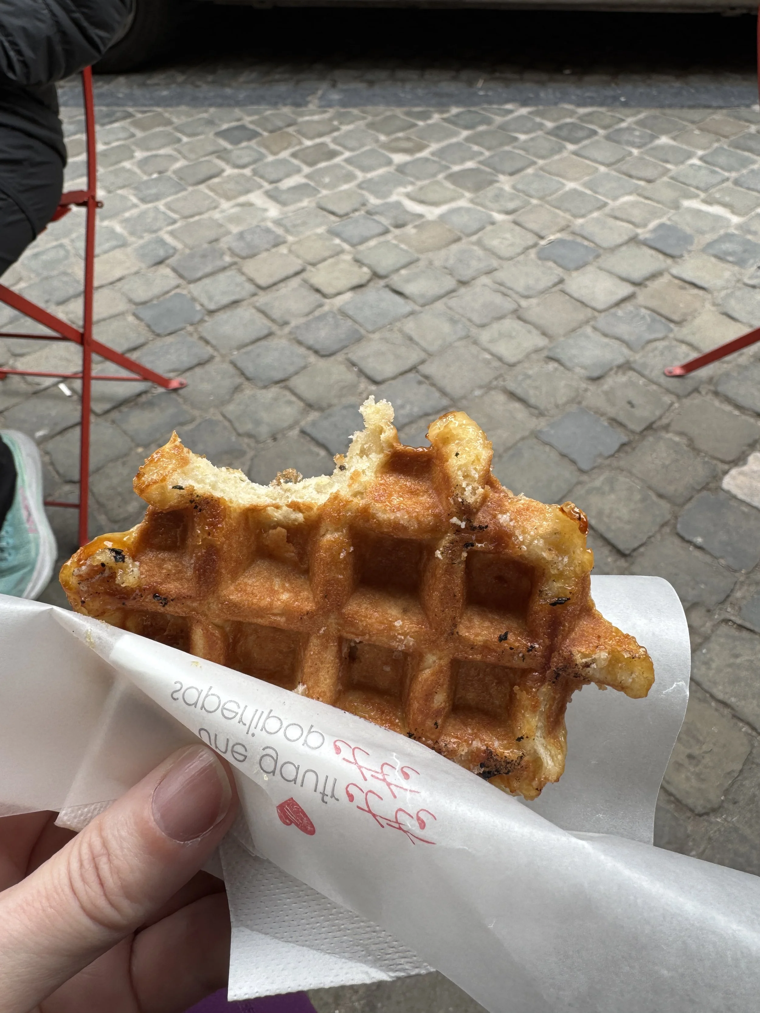 Next door was Sucré, which had confections including something called Cuberdons. The description didn’t help much, but the employee offered a sample. It was chewy, moist, fruity, and sugary… definitely unique. I bought some because it felt like something my boyfriend would like. It was probably the most unusual thing we tried all day.
