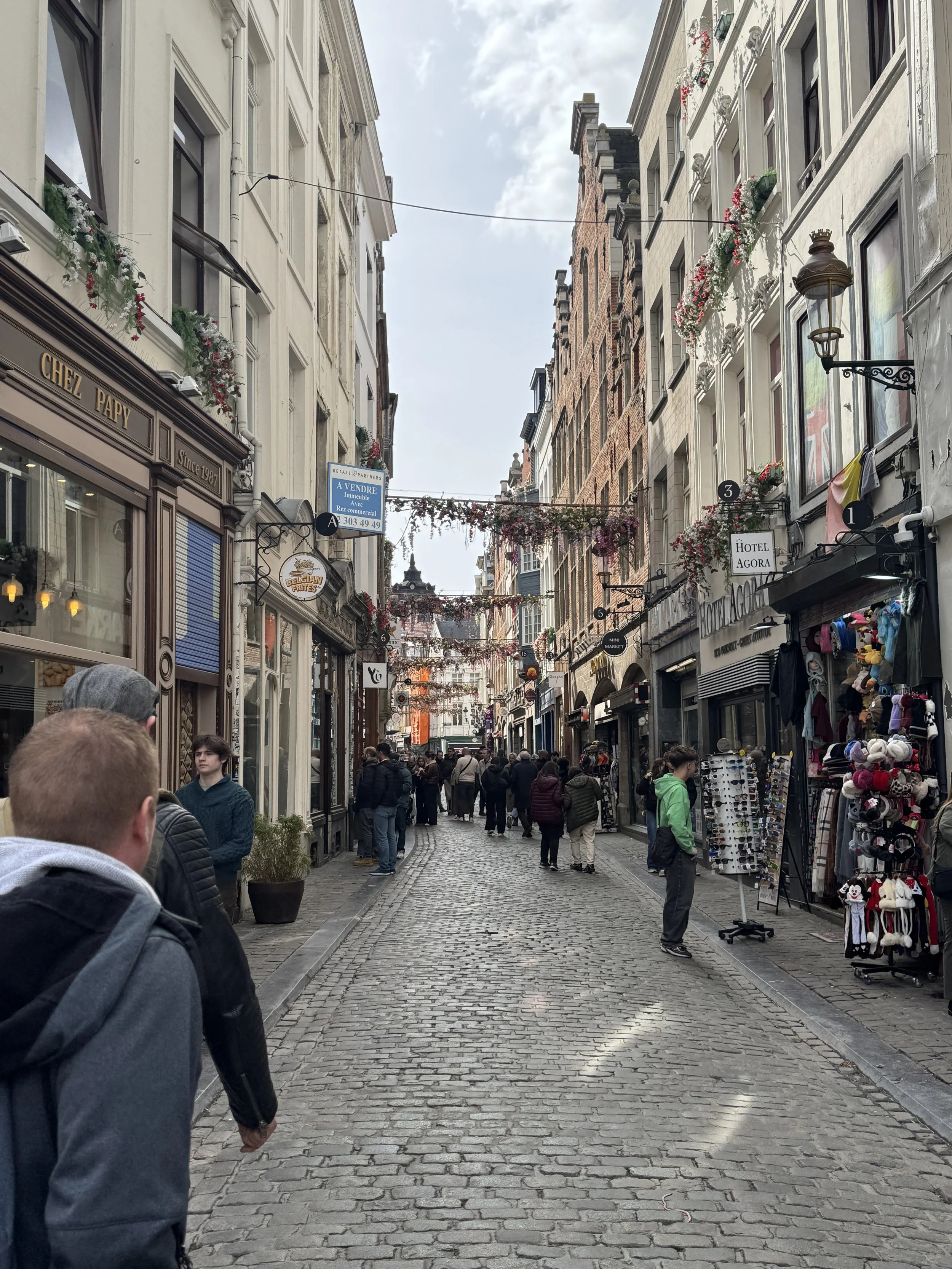 We wandered down Rue des Éperonniers, a cute street with flowers hanging overhead, then passed through a strange indoor shopping area that had everything from fast food to luggage to nail salons. It felt completely different from the outside.