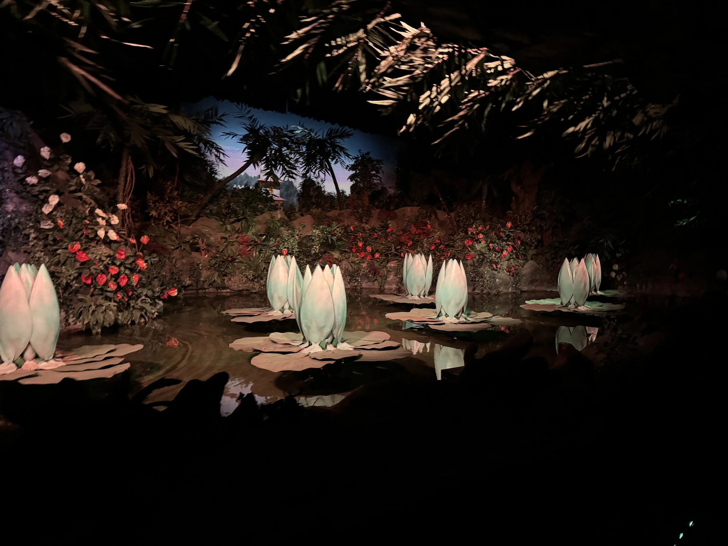 Our first ride was Fata Morgana, where you sit in a boat-like cart and move through an Arabian Nights-style world. It’s indoors, dark, and has multiple scenes. It’s kind of like It’s a Small World, but way less annoying. A lot of the dialogue isn’t in English, but you still get the idea.