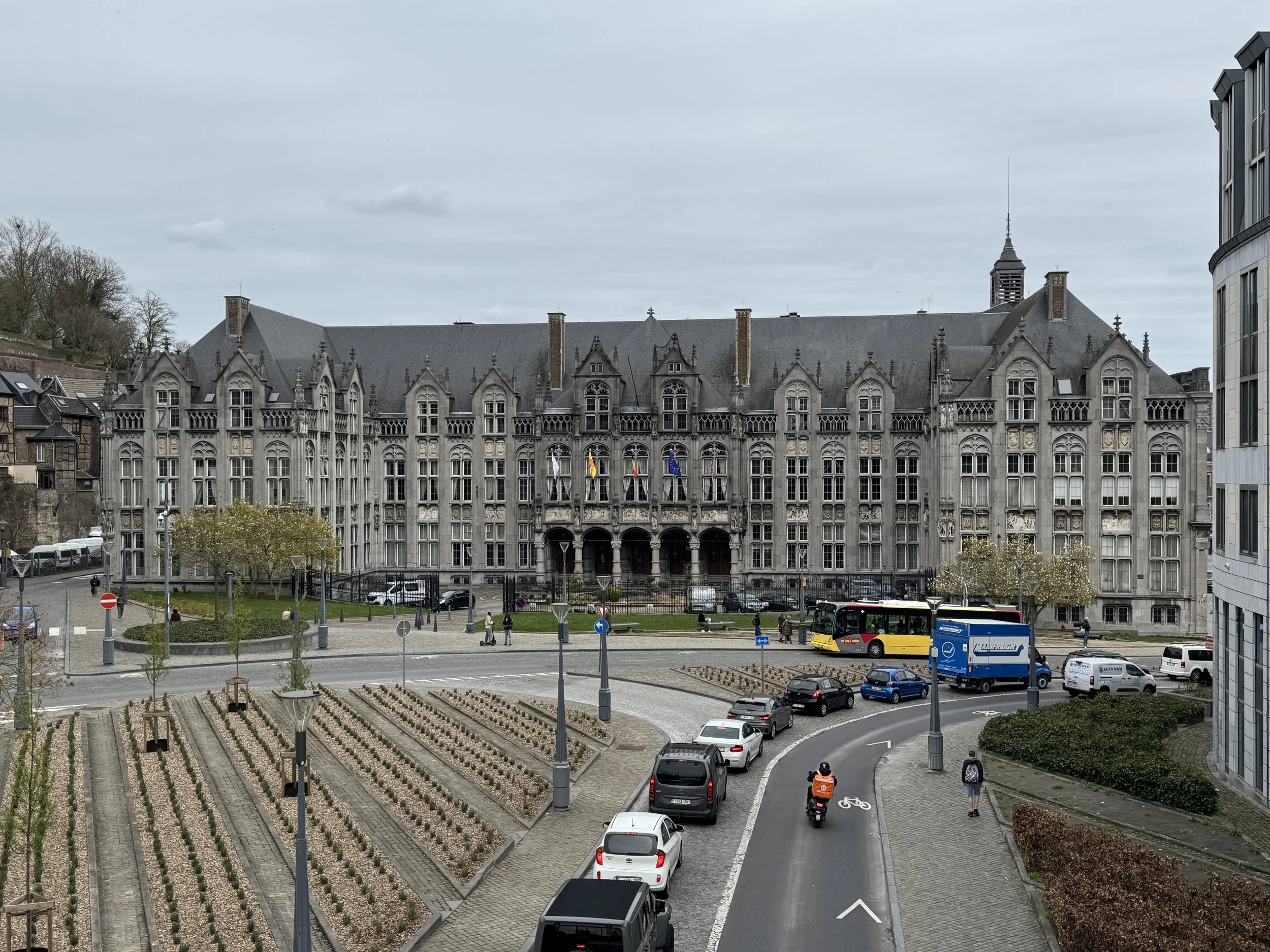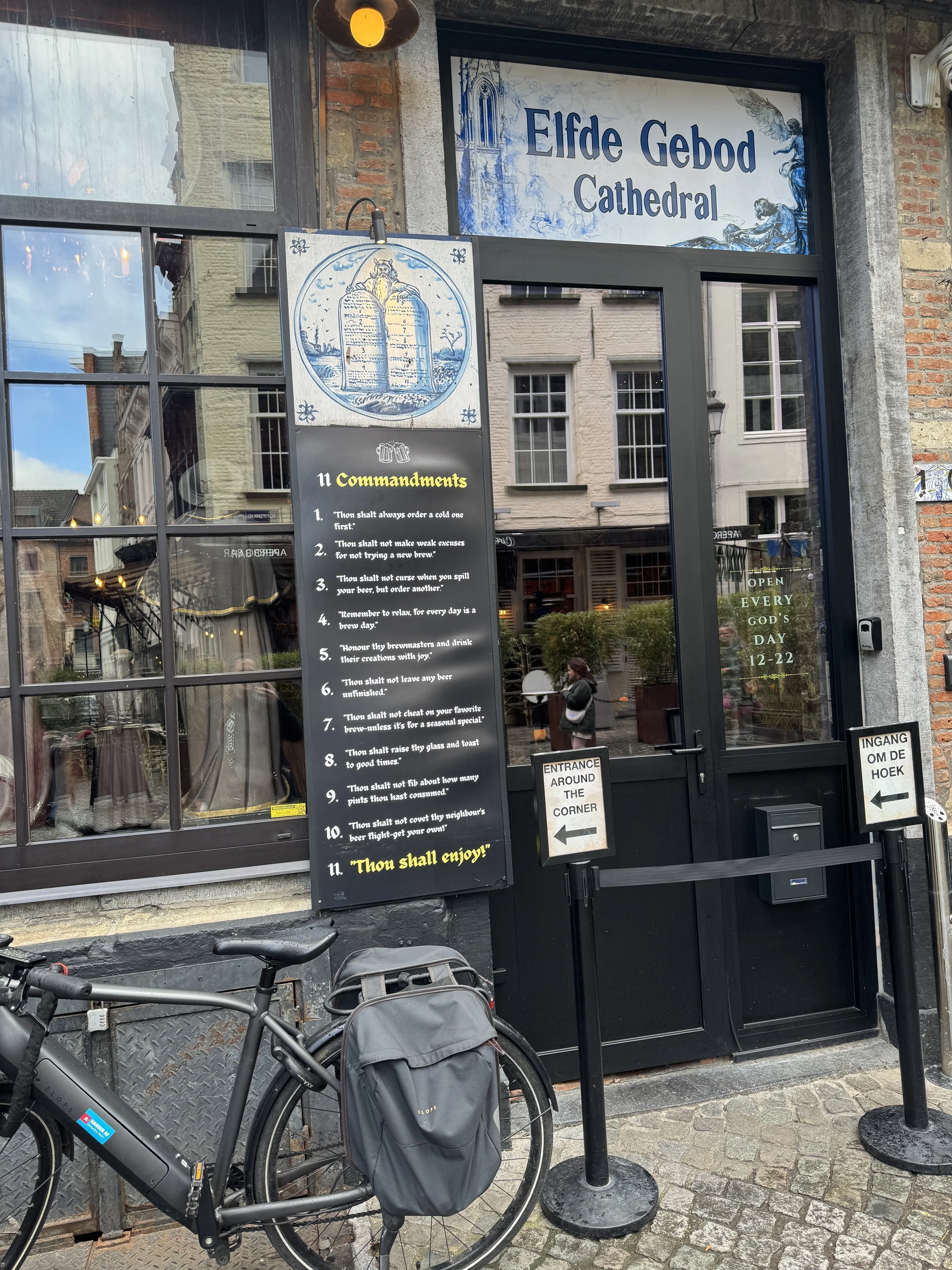 The hotel is small with only six parking spots, but we lucked out and got the first one. The room was actually really nice—modern, clean, and finally a bathroom where the shower didn’t leak (Belgium is now 4 for 4 on that). The beds were separate twins, which seems to be the European standard, and there was a Moroccan-style lamp that gave the room great ambiance. It was quiet, and I ended up getting my best sleep of the trip.