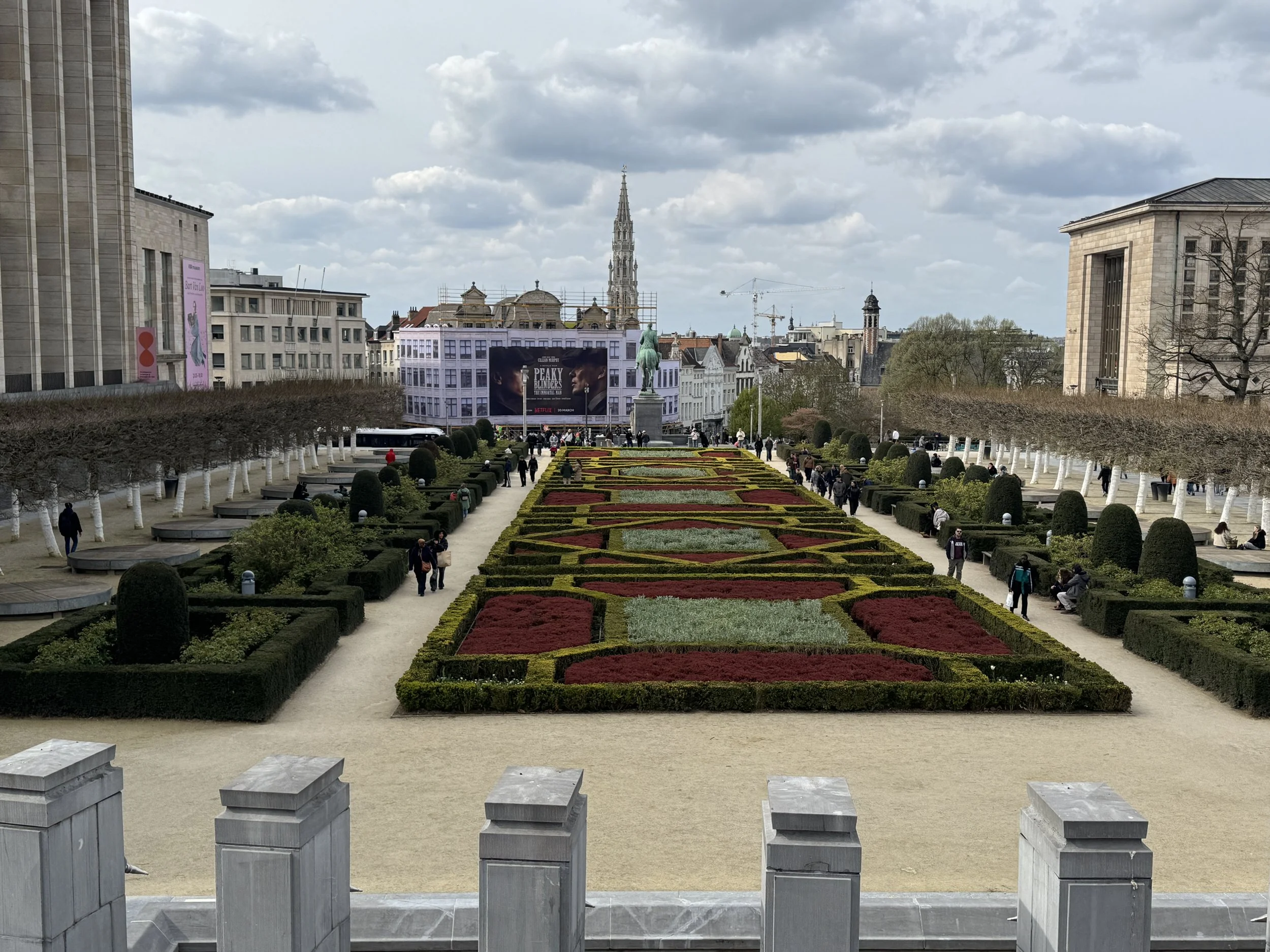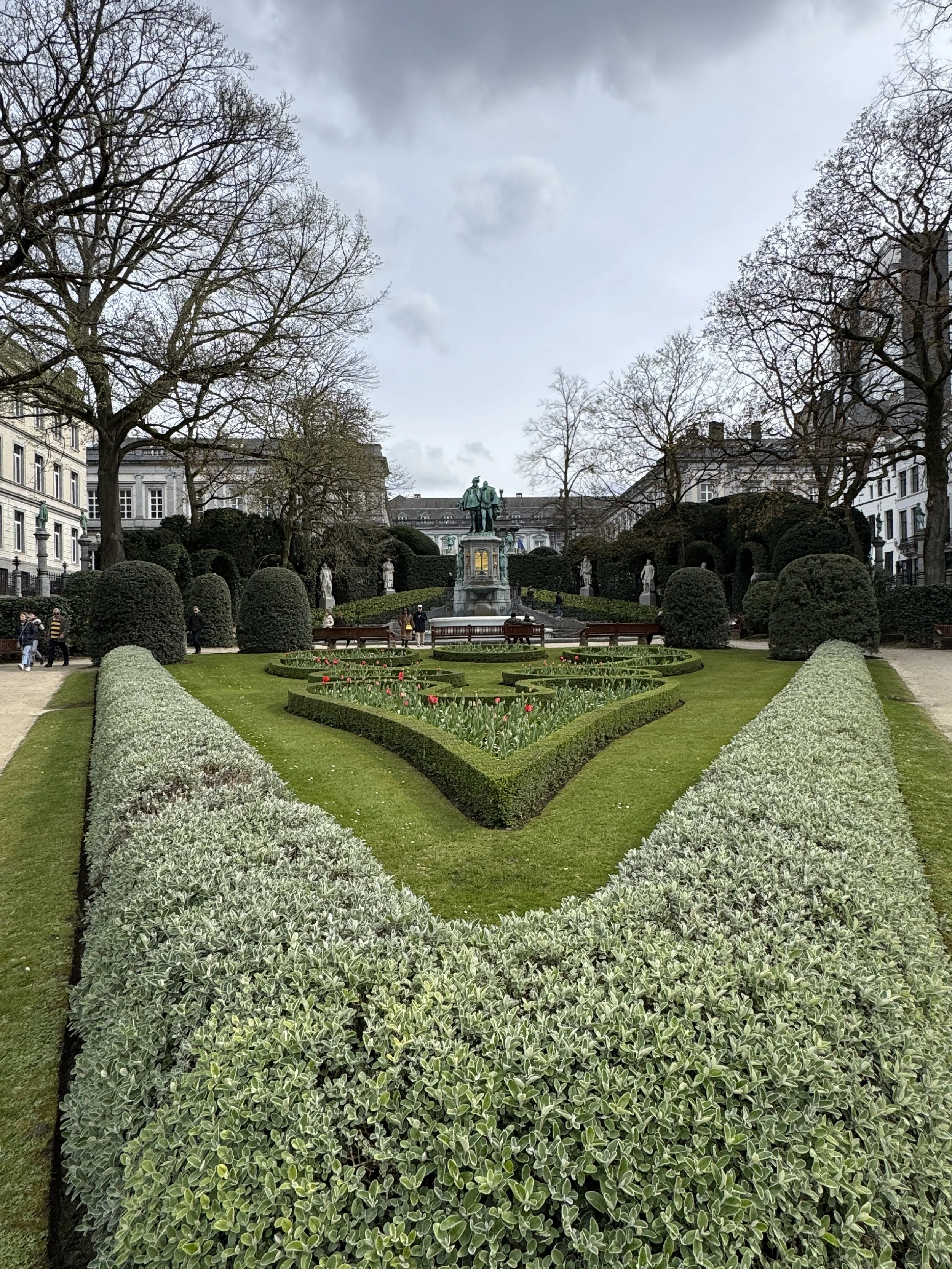 Directly across from it is Parc de Bruxelles, the city’s largest central park. Built in the late 18th century on former palace grounds, it features symmetrical paths, statues, and open green spaces. We took a break here on a bench, watched people, and regrouped.