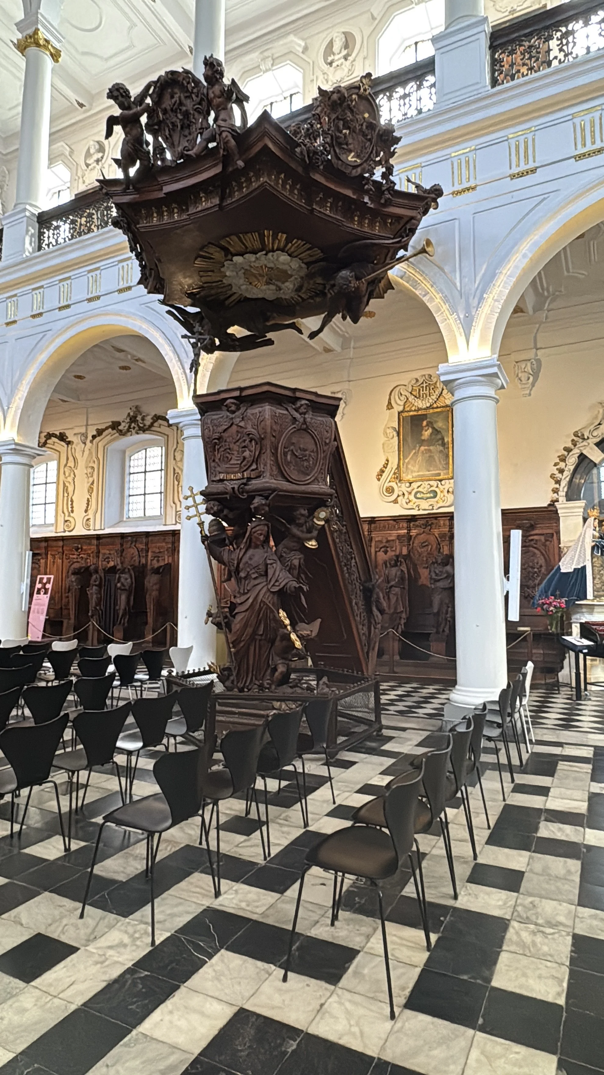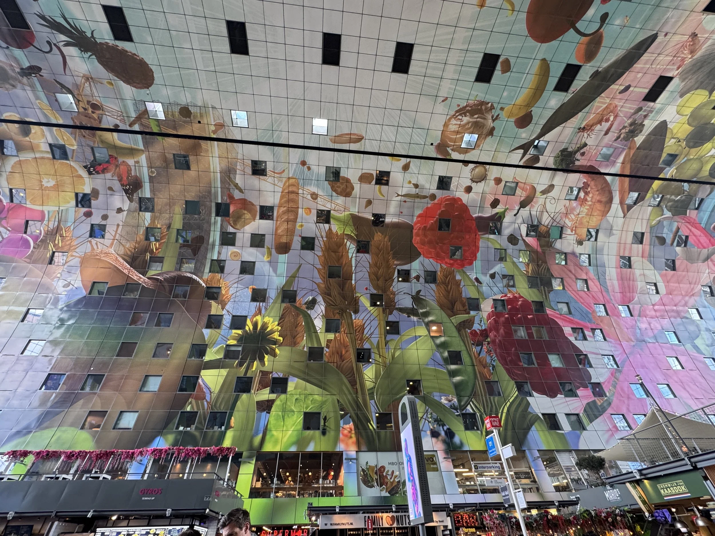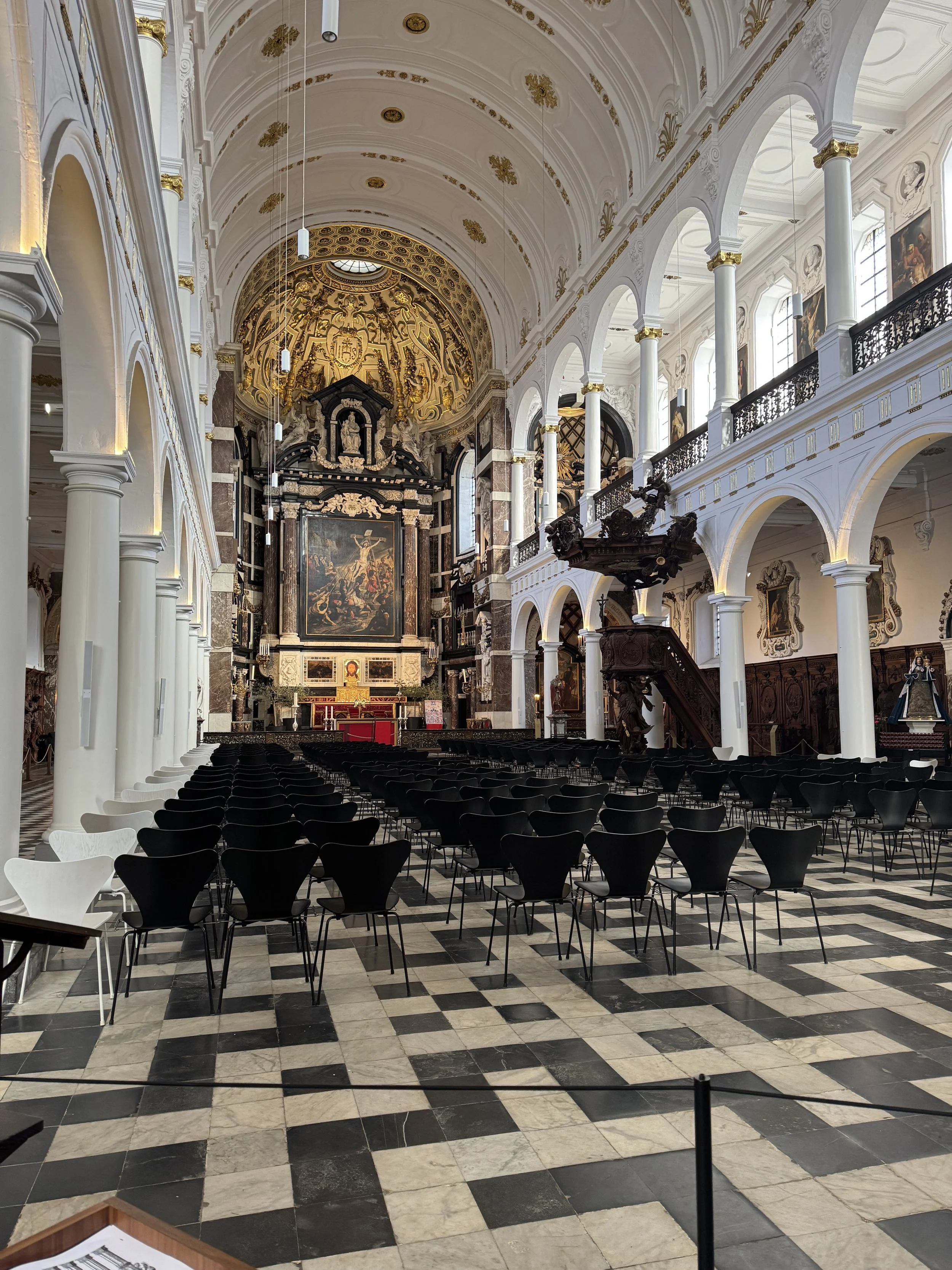 From there we headed to the Oude Kerk, Amsterdam’s oldest building and church, dating back to the 13th century, known for its soaring wooden ceiling, historic graves, including Rembrandt van Rijn’s wife, and its modern art exhibitions set within a centuries-old space. Now this was a true highlight of the day. It had massively high ceilings, floor-to-ceiling spiral staircases, crypts covering the entire floor, stained glass windows, including old ones, and one of the largest organs I’ve ever seen. It was amazing.