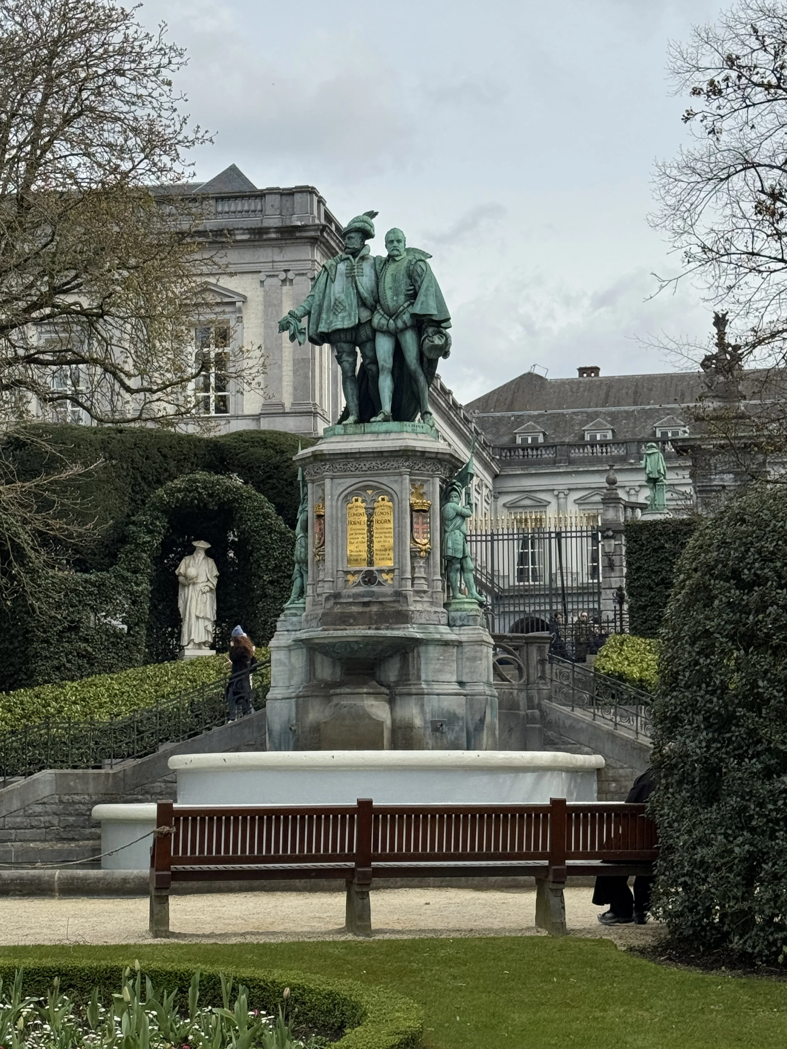 Right nearby is the statue of Counts Egmont and Hoorn in Petit Sablon. These two nobles were executed in 1568 by Spanish forces, sparking resistance that contributed to the Dutch Revolt. The statues honor them as symbols of freedom. The surrounding garden was peaceful and a nice place to pause.