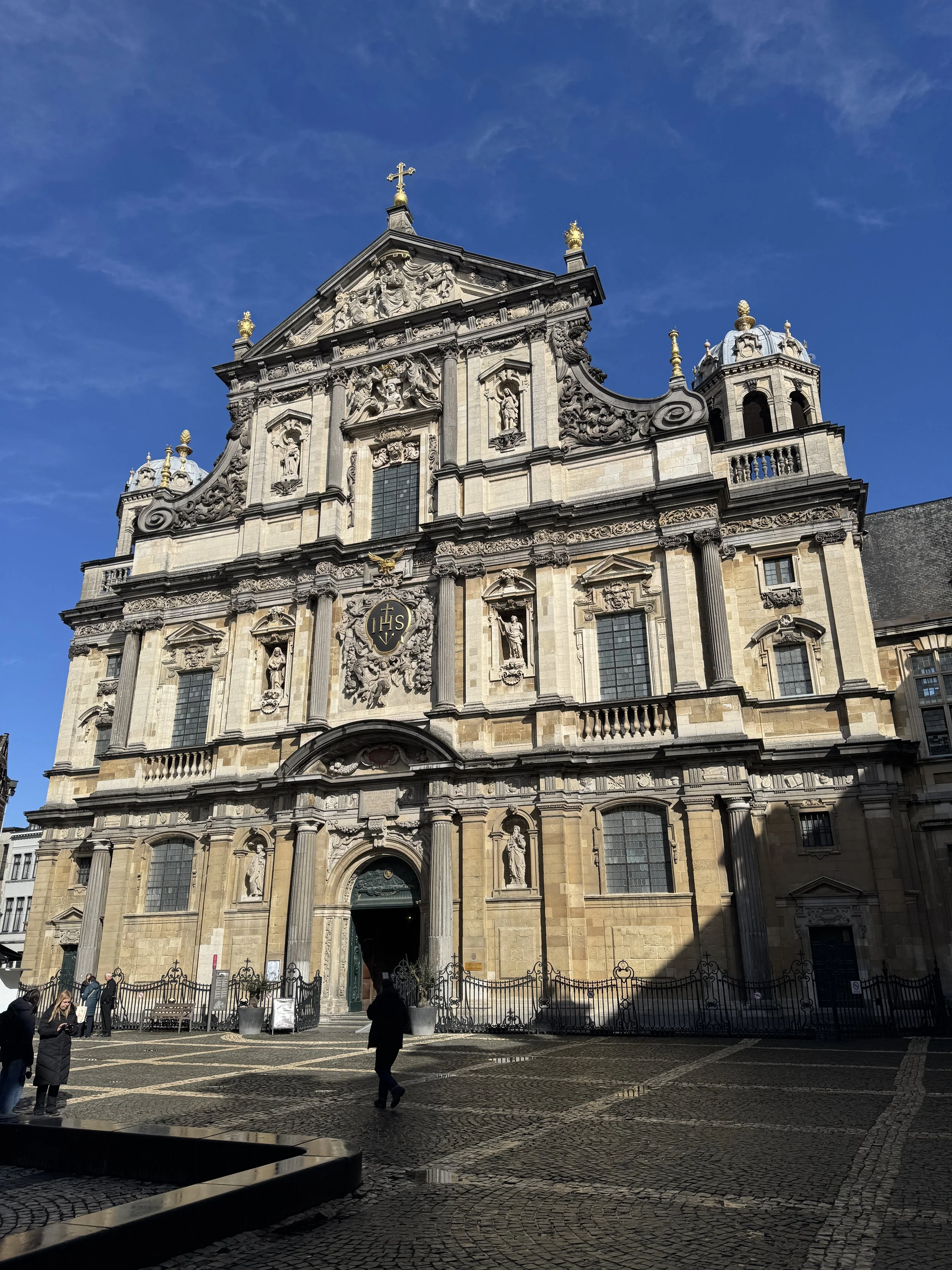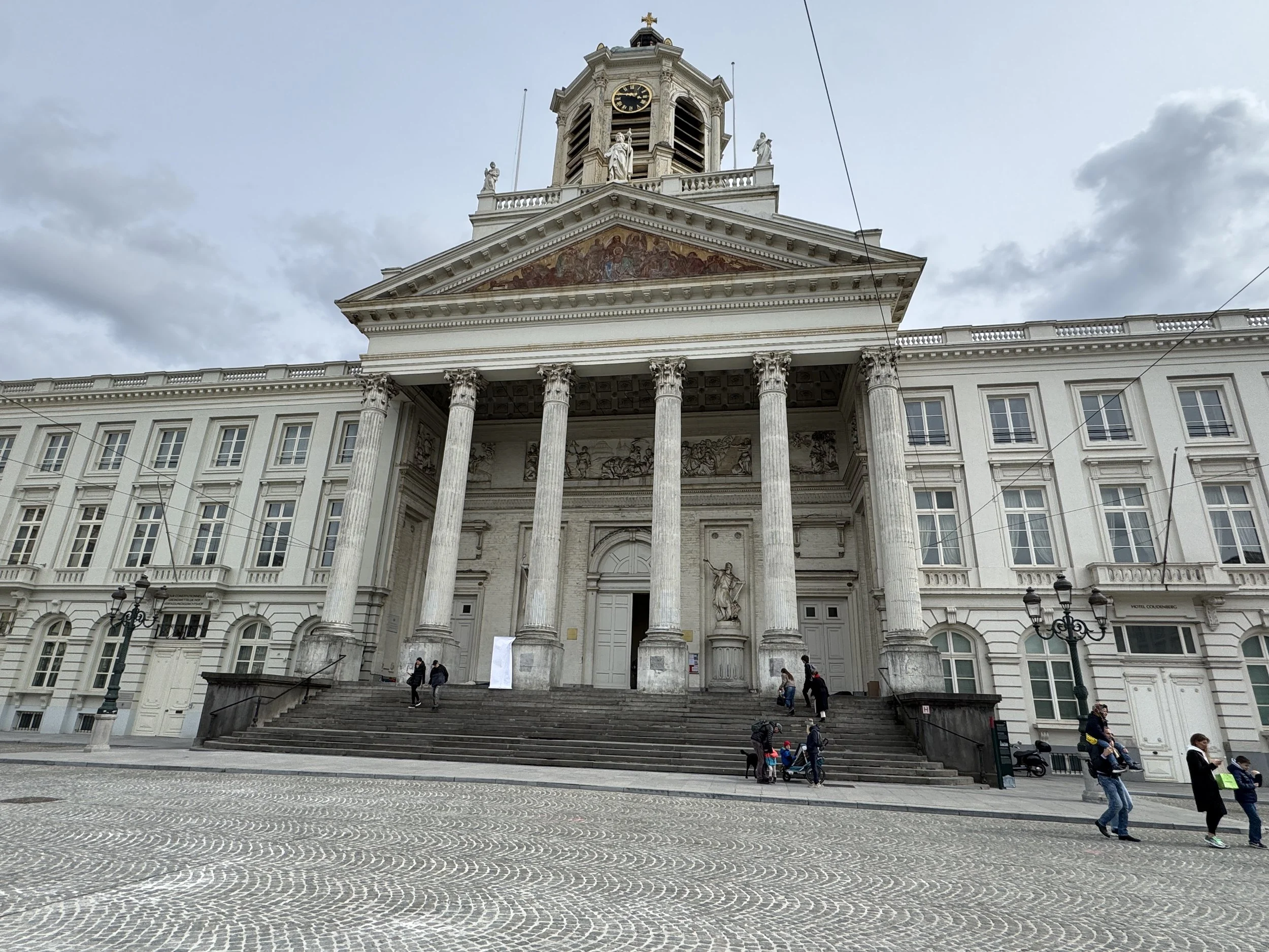 About 5–10 minutes away is Saint Jacques-sur-Coudenberg, built between 1776 and 1787 on the site of a palace chapel destroyed by fire. It’s neoclassical, so very different from the Gothic churches we’d been seeing. Clean lines, symmetry, and columns. It also plays a role in Belgian royal ceremonies. Honestly, I wasn’t even sure it was a church at first, but the clock tower and overall look made it stand out.
