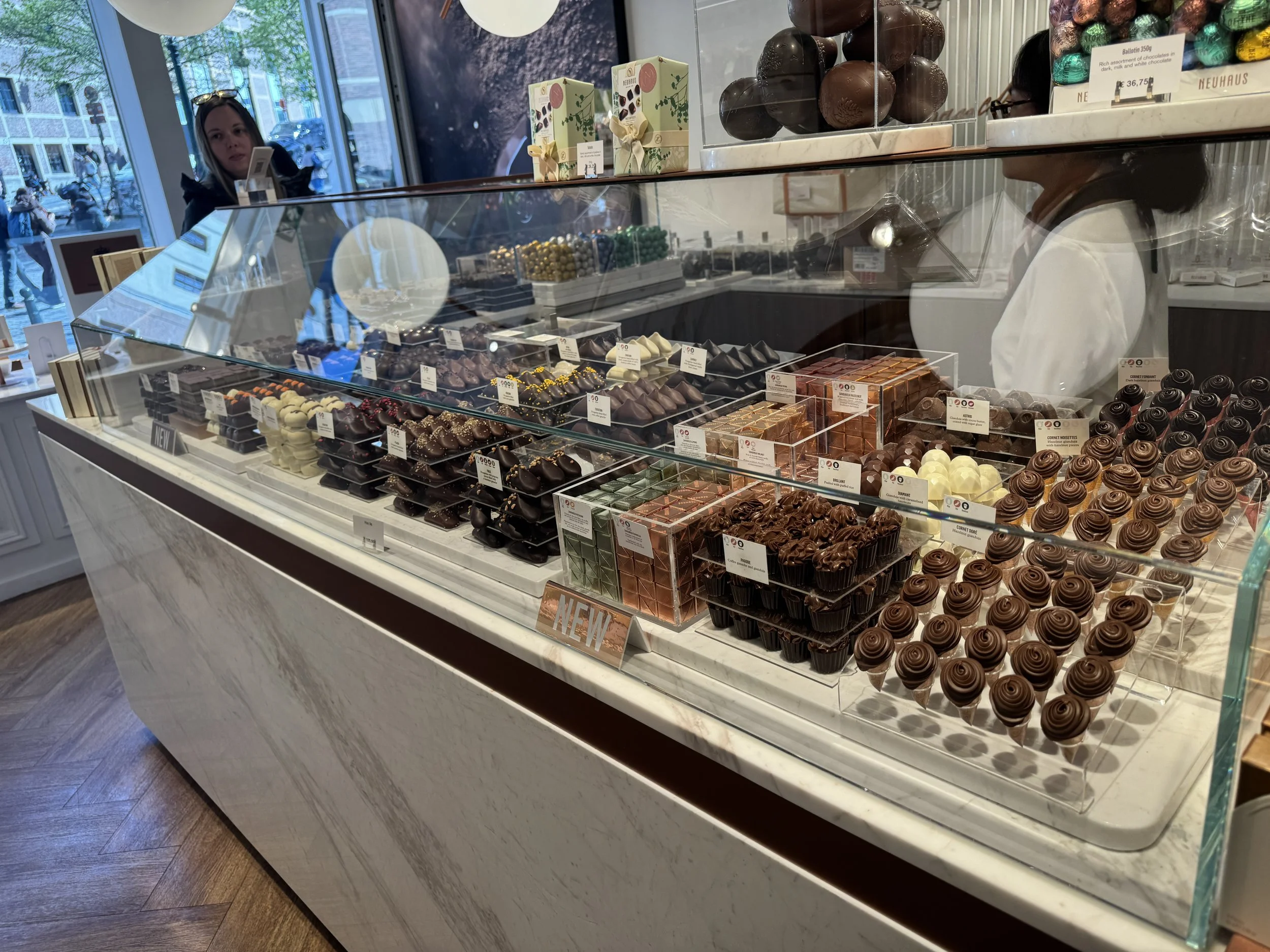 Then we hit NEUHAUS Bruxelles, where we got another free sample and, of course, bought more chocolate. During checkout, they gave me two extra pieces just for providing my name and email. No complaints.