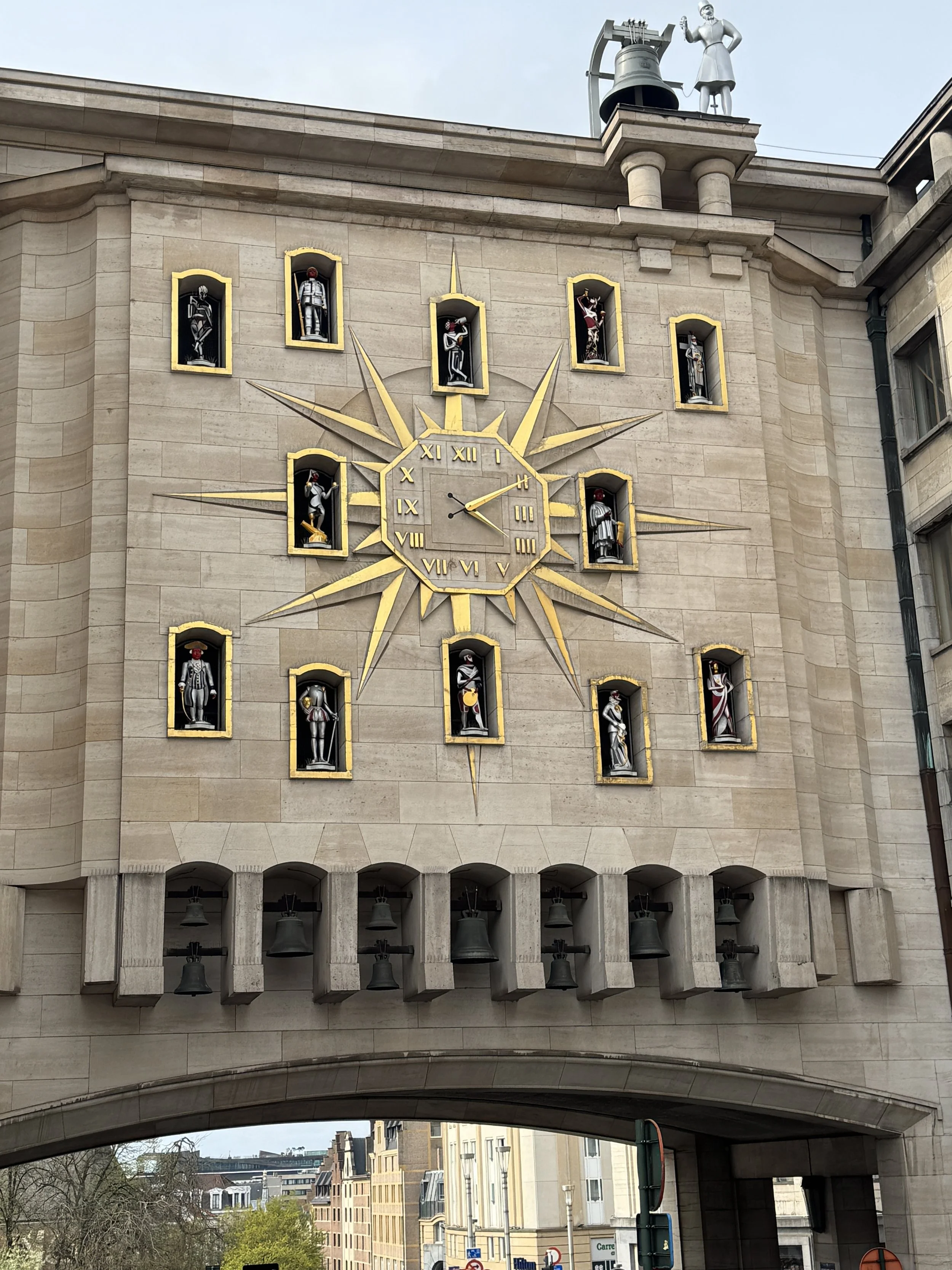 On the way back to the car, we passed through Mont des Arts, a cultural area developed in the early 20th century and redesigned for the 1910 and 1958 World Expos. It has gardens, stairs, and a decorative clock known as the Carillon du Mont des Arts, featuring moving figures tied to Belgian history.